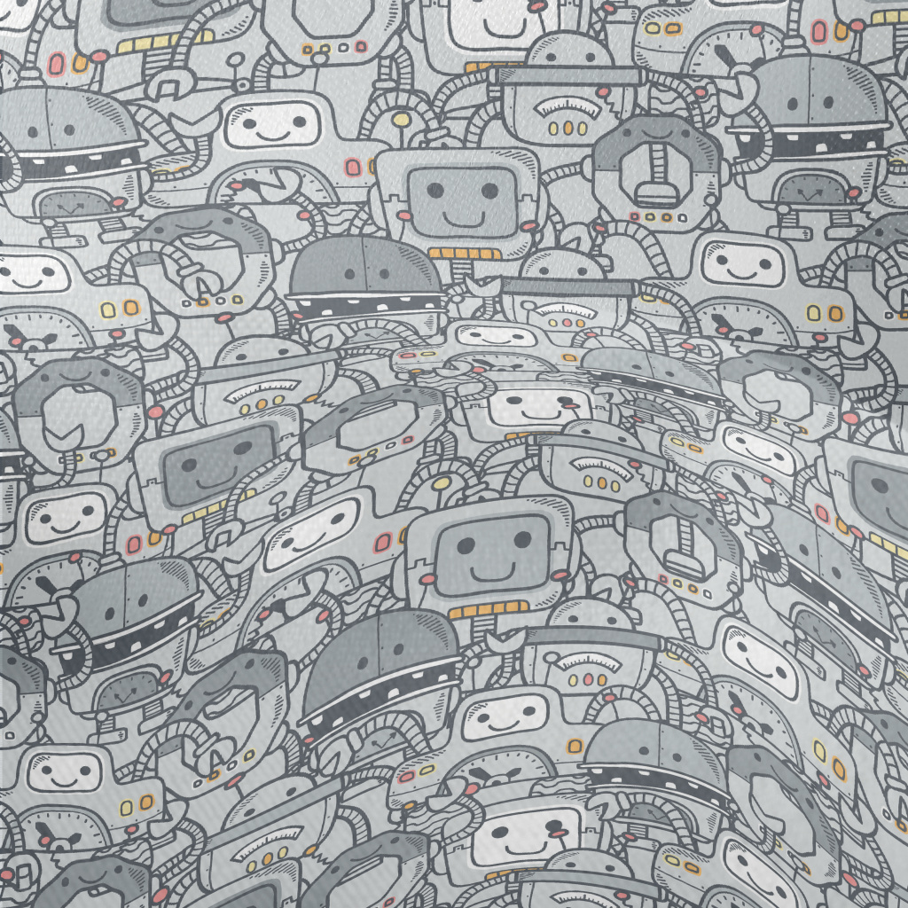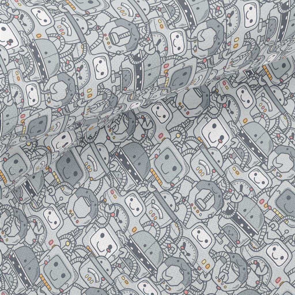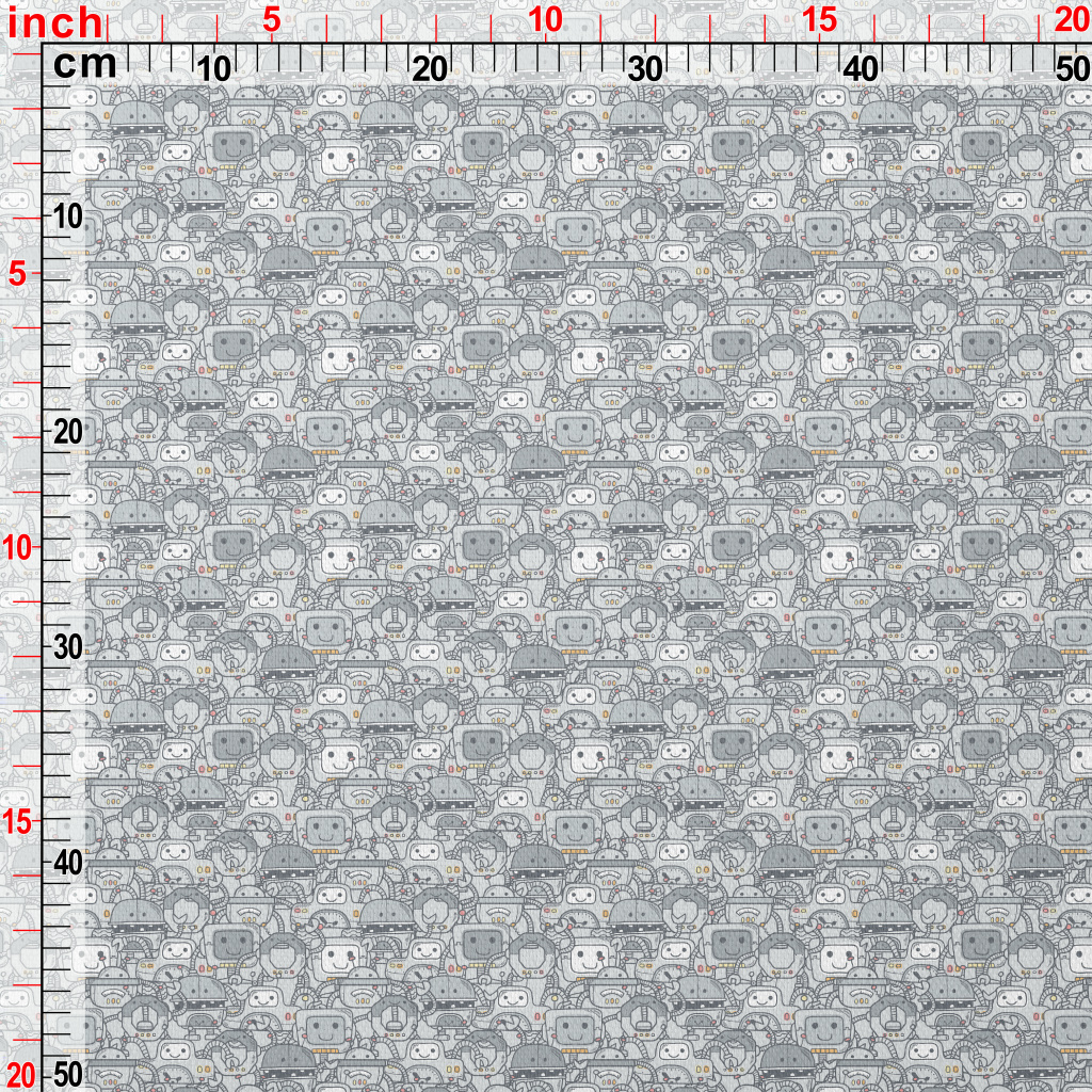 塗鴉各種可愛機器人竹節麻(幅寬150公分)