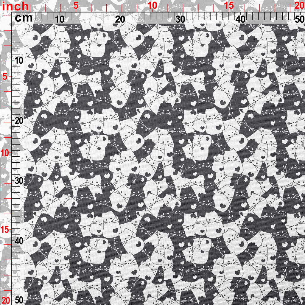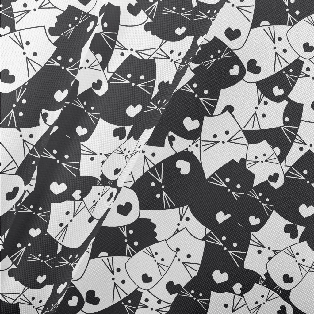 簡約黑白愛心貓咪春亞紡(幅寬160公分)