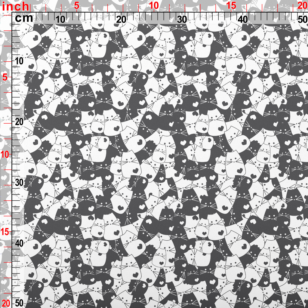 簡約黑白愛心貓咪薄棉布(幅寬150公分)