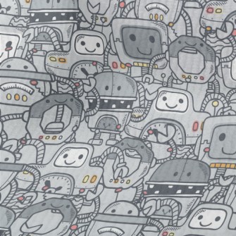 塗鴉各種可愛機器人薄棉布(幅寬150公分)