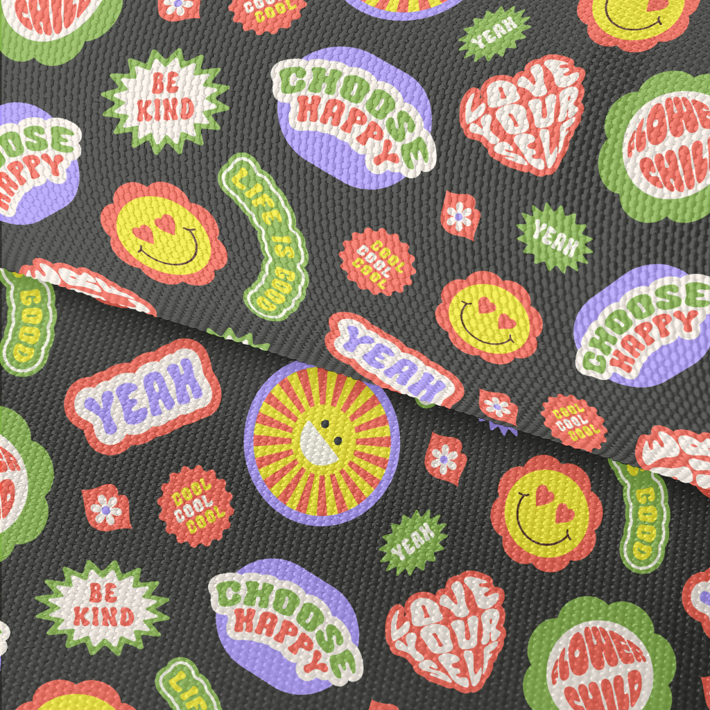 復古時尚英文與花朵牛津布(幅寬150公分)