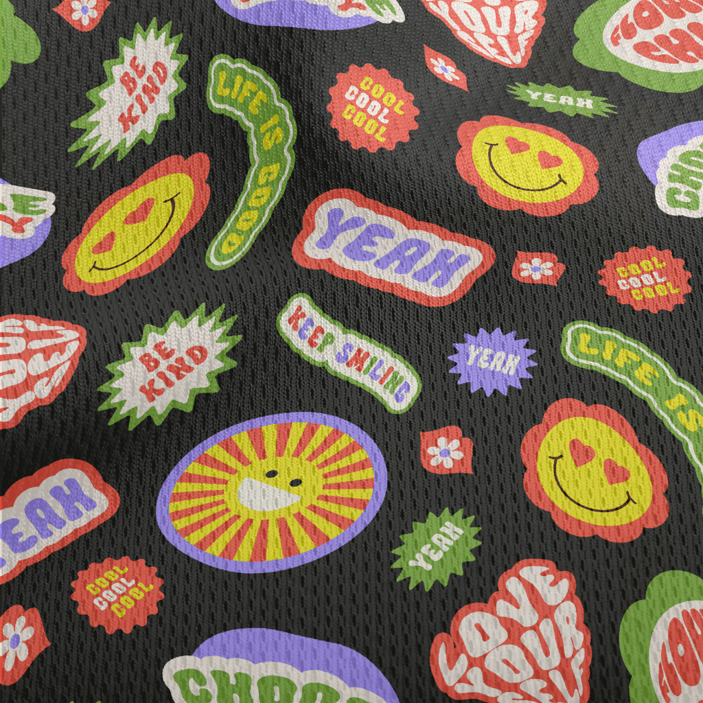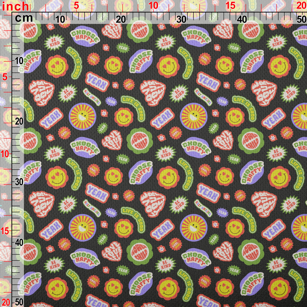 復古時尚英文與花朵鳥眼布(幅寬160公分)