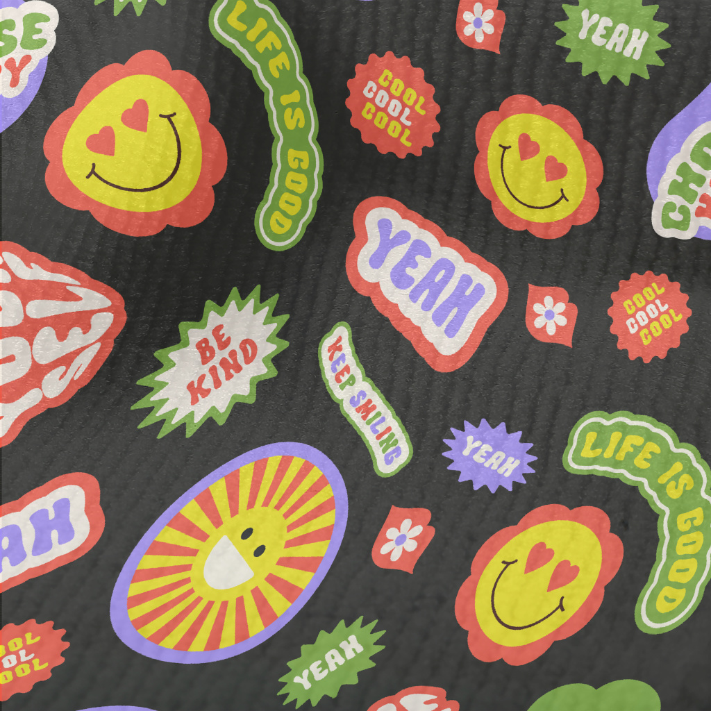復古時尚英文與花朵毛巾布(幅寬160公分)