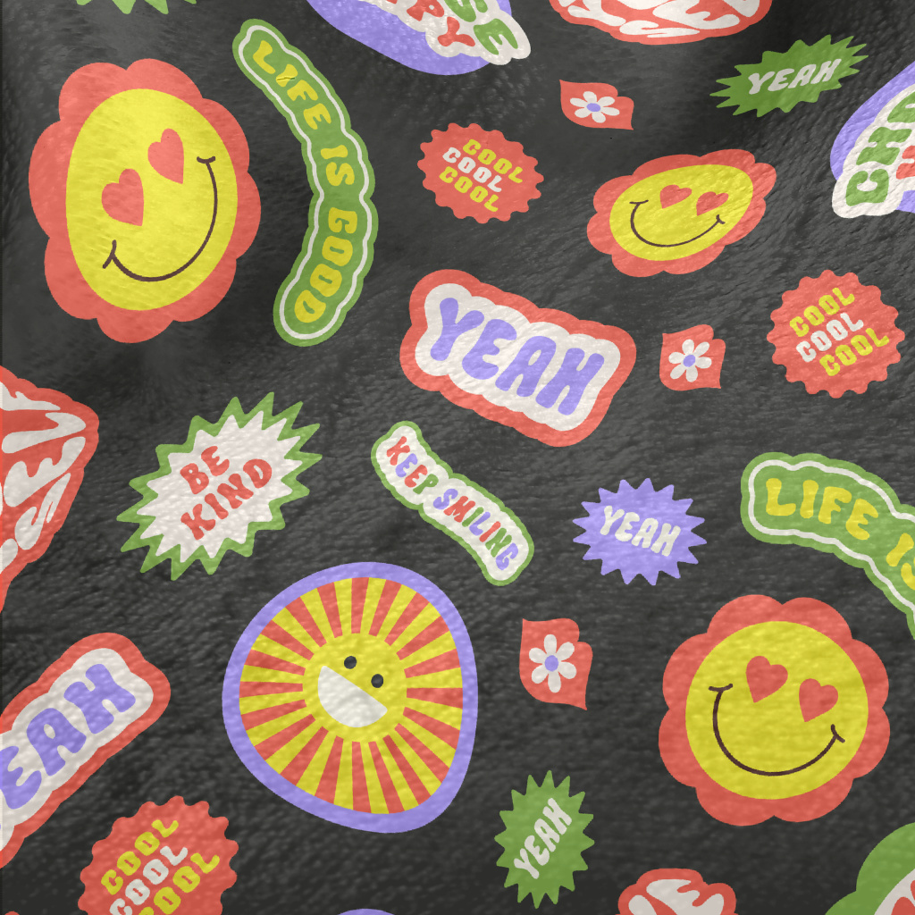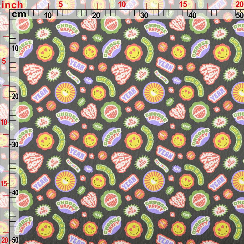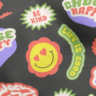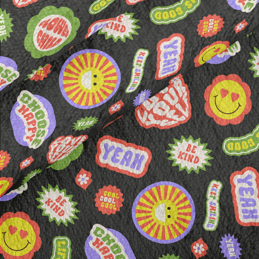 復古時尚英文與花朵法蘭絨(幅寬150公分)