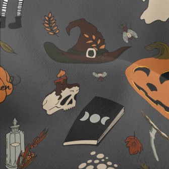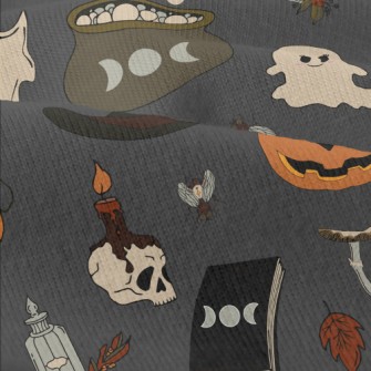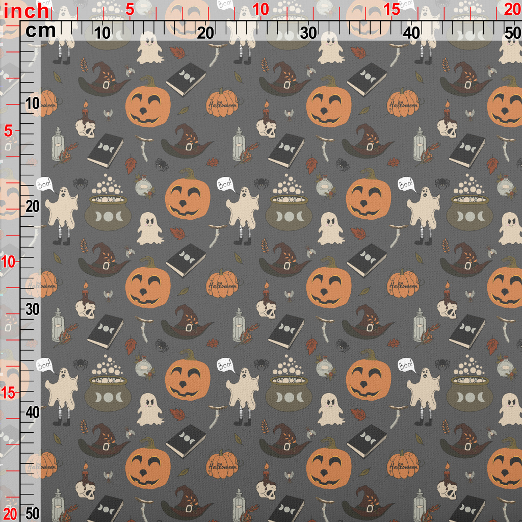 手繪幽靈南瓜鍋爐蠟燭薄棉布(幅寬150公分)
