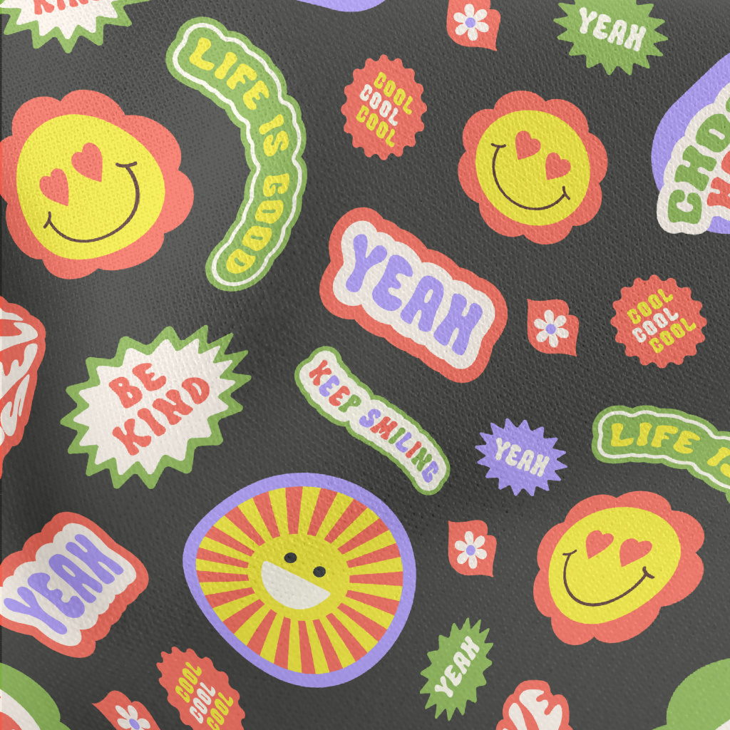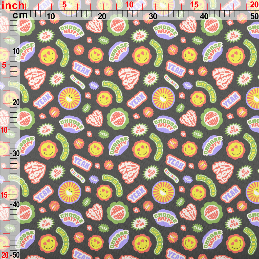 復古時尚英文與花朵薄棉布(幅寬150公分)