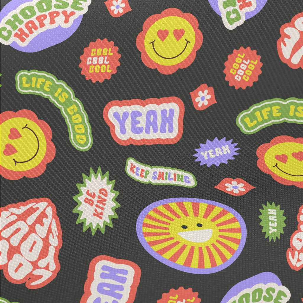 復古時尚英文與花朵厚棉布(幅寬150公分)