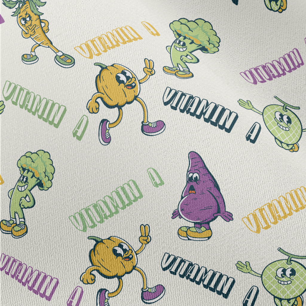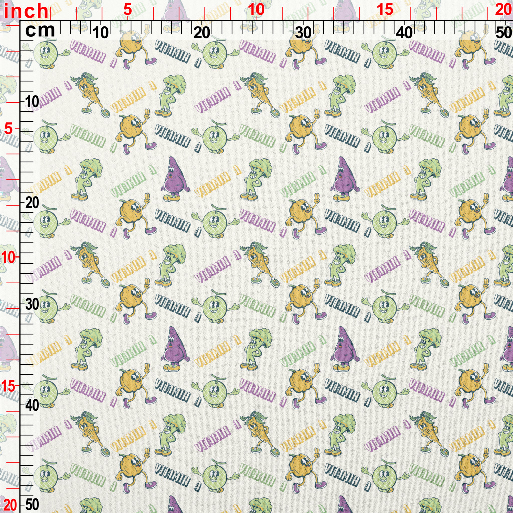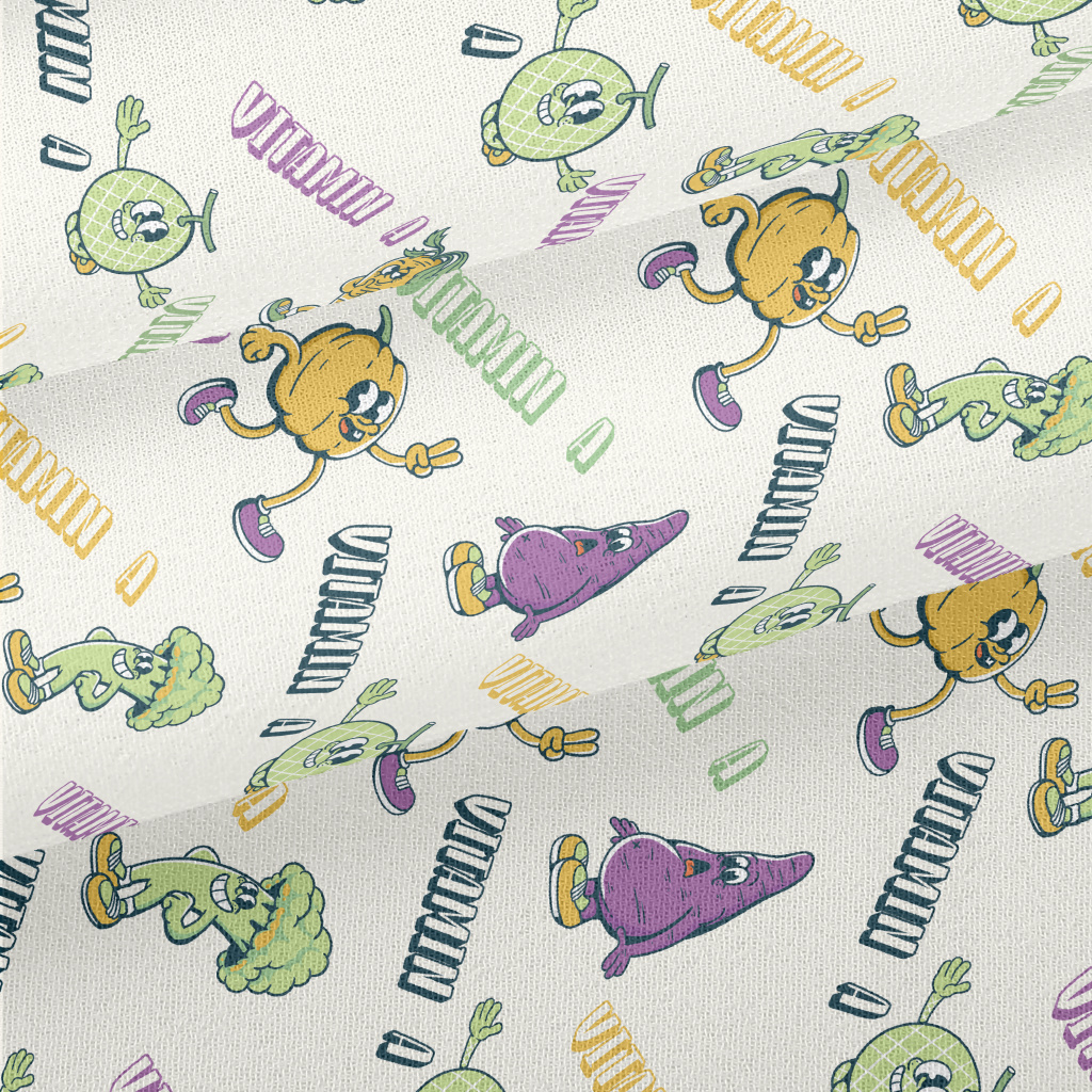 卡通風格水果與蔬菜雪紡布(幅寬150公分)