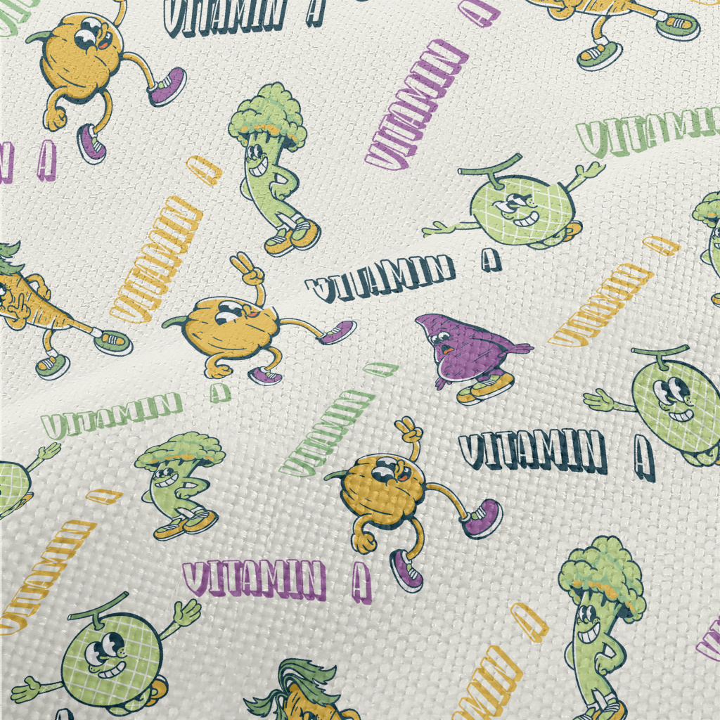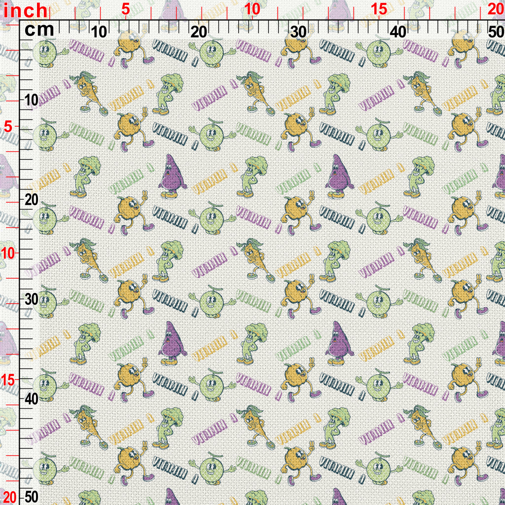 卡通風格水果與蔬菜麻布(幅寬150公分)