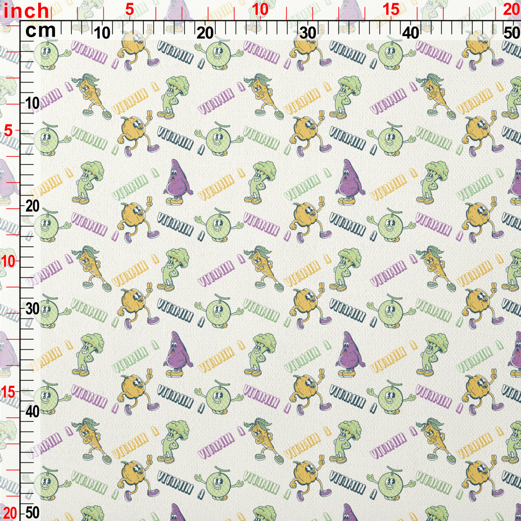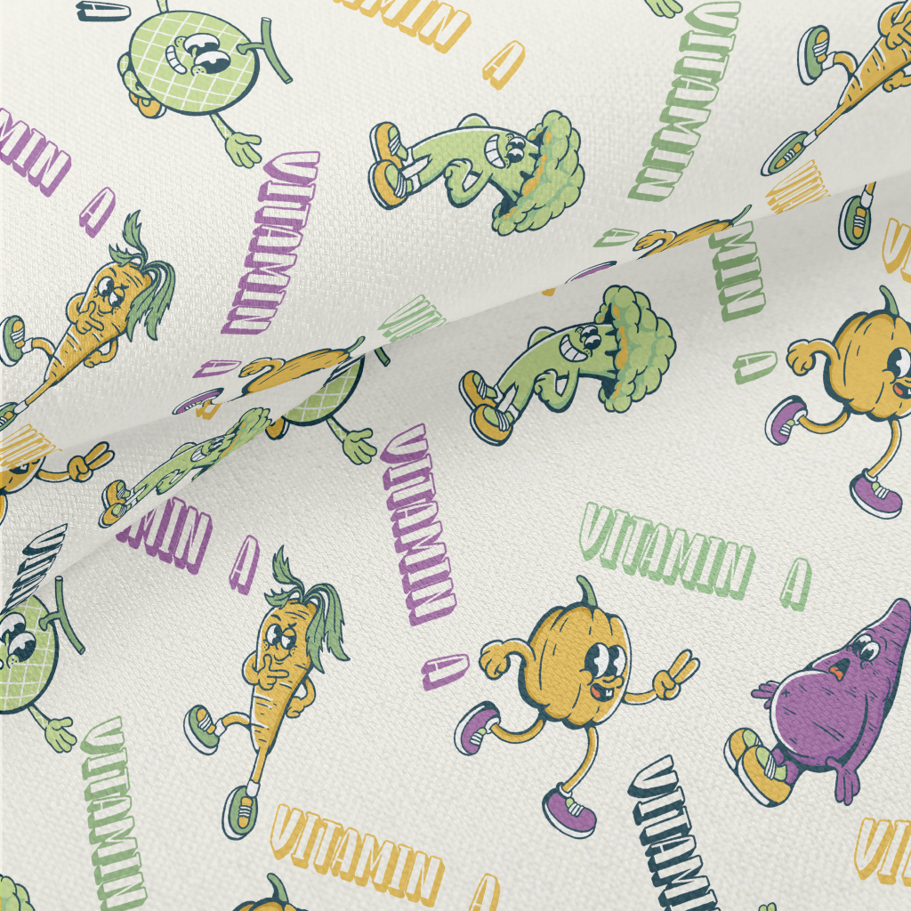 卡通風格水果與蔬菜竹節麻(幅寬150公分)