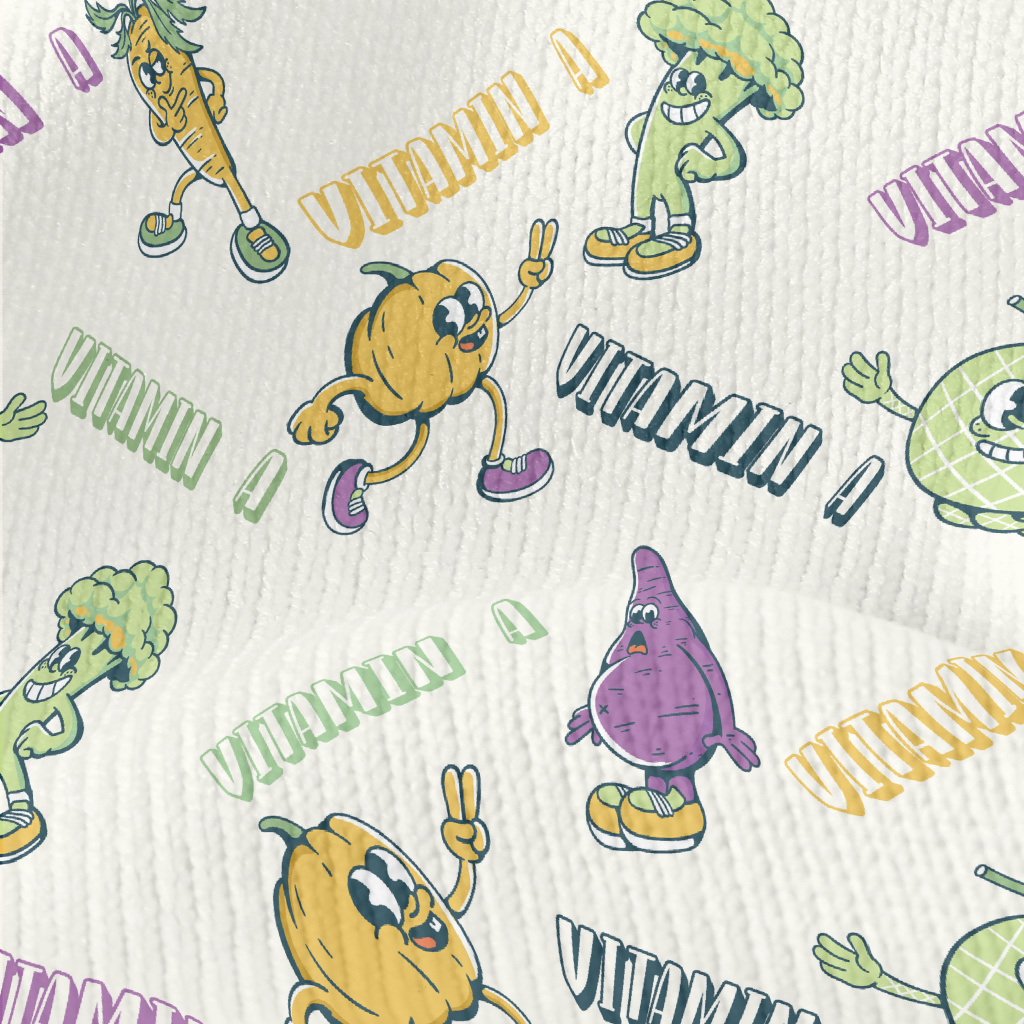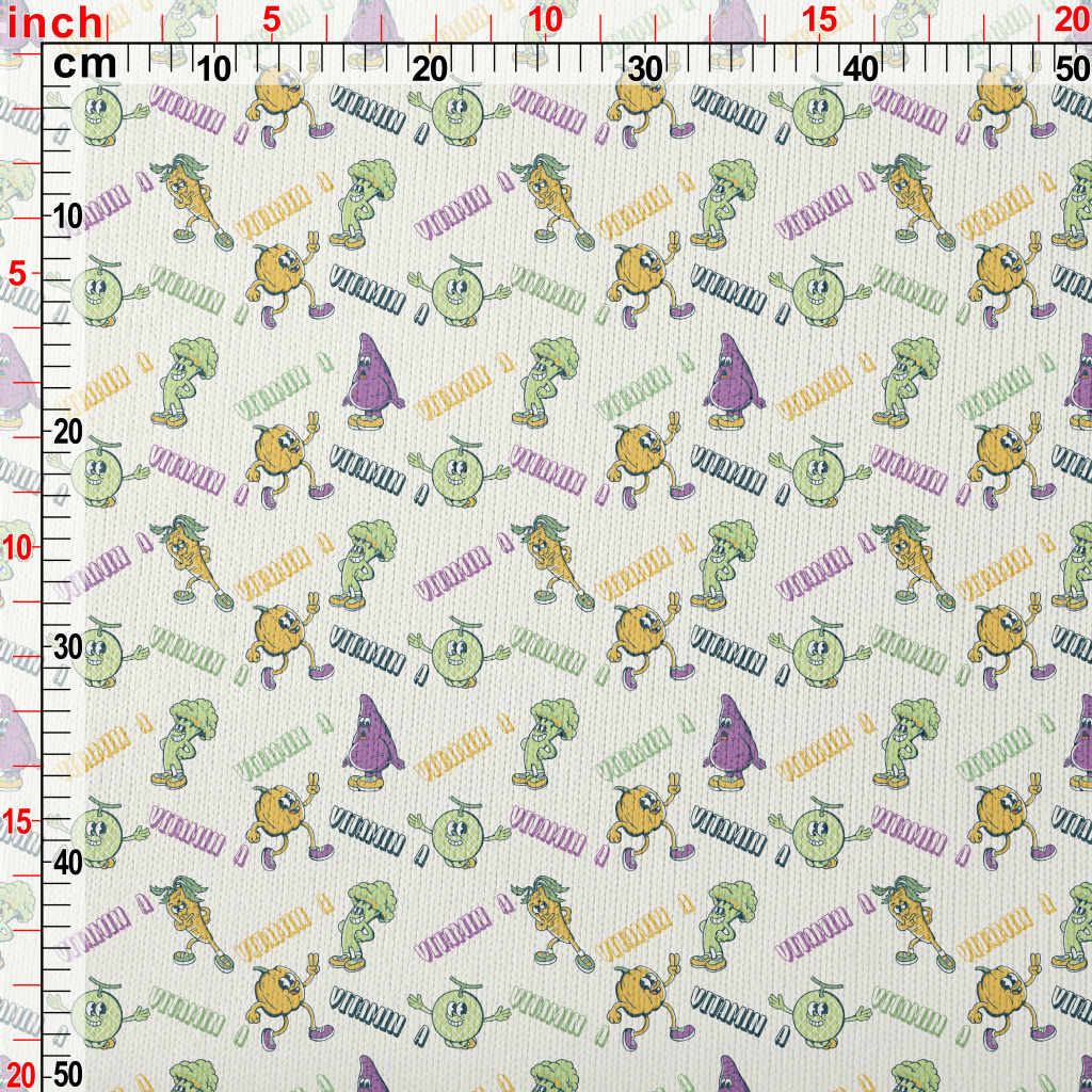 卡通風格水果與蔬菜仿毛衣布(幅寬150公分)