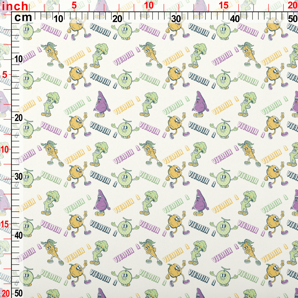 卡通風格水果與蔬菜薄棉布(幅寬150公分)