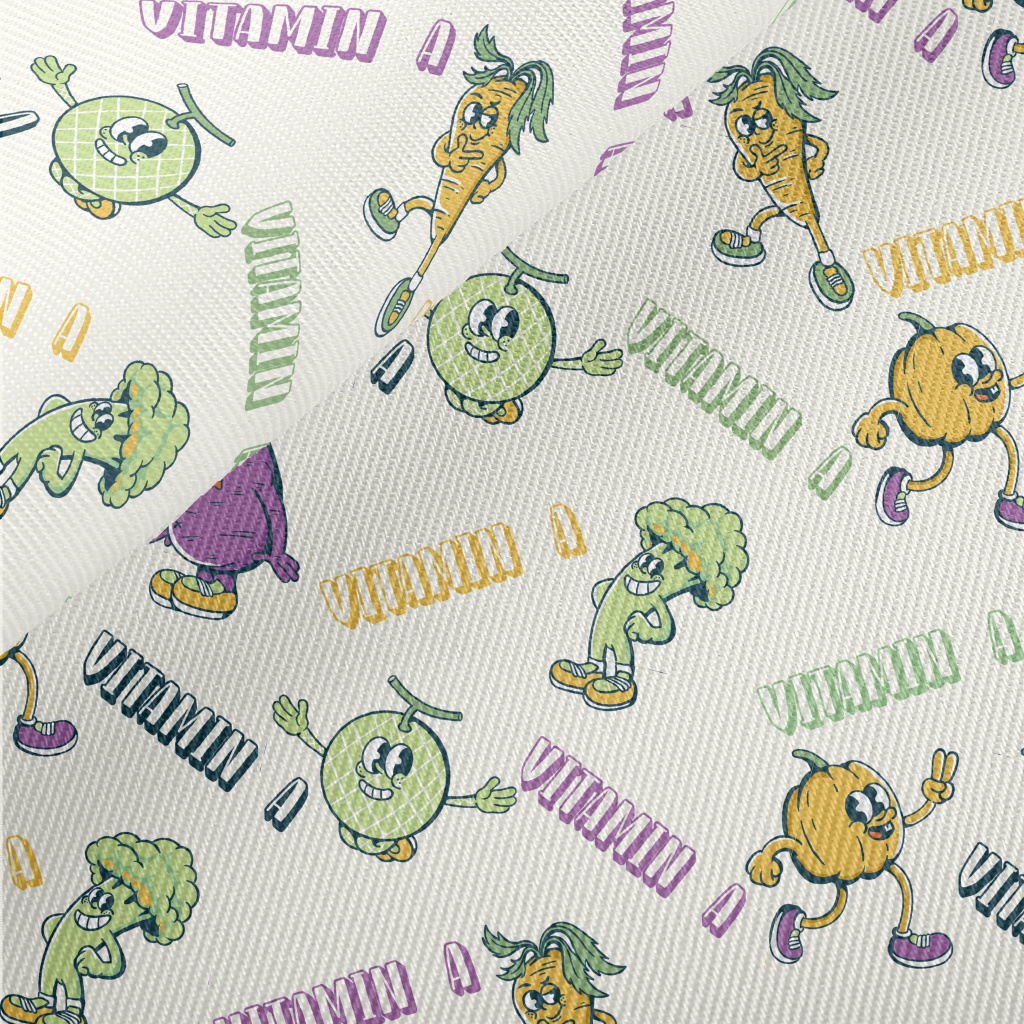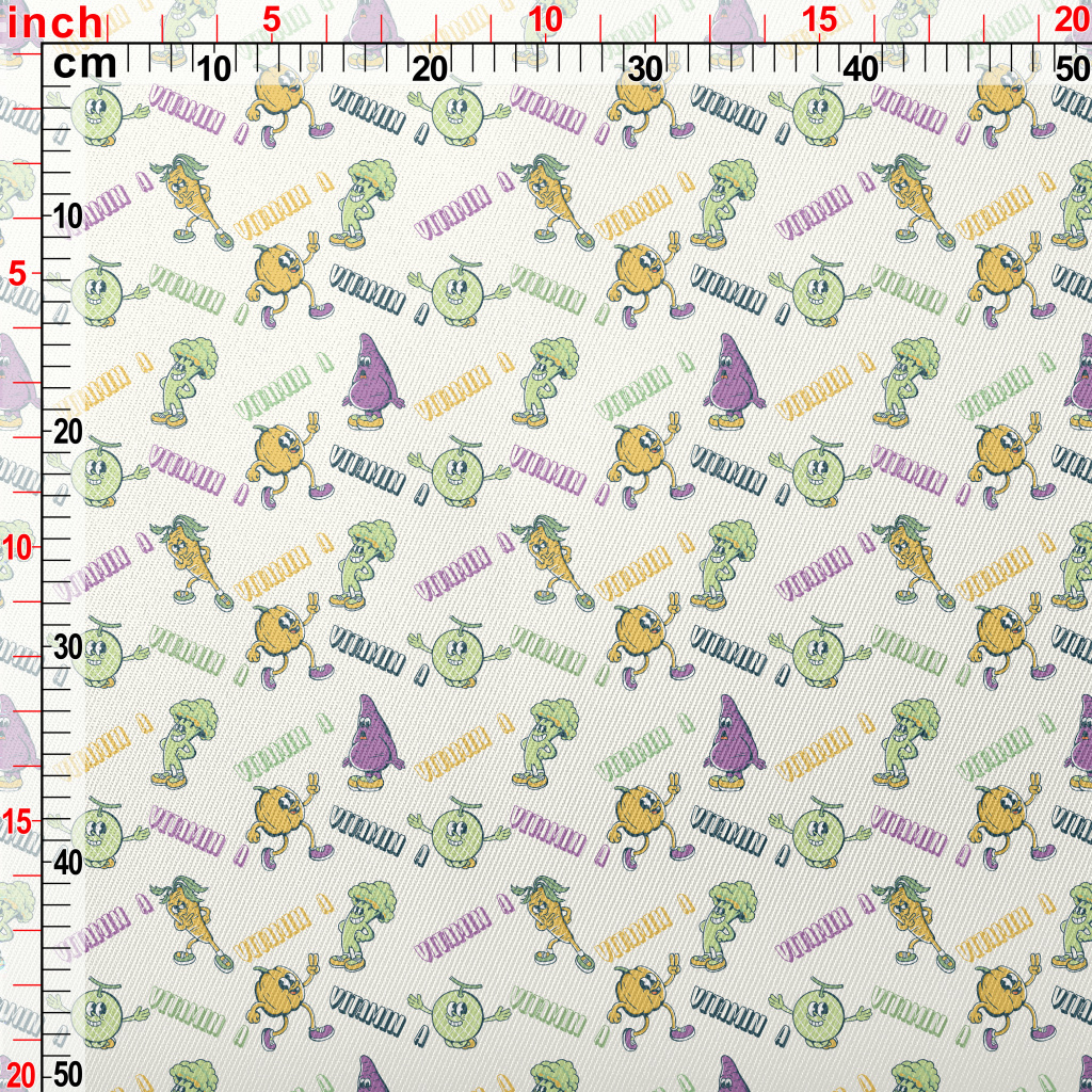 卡通風格水果與蔬菜厚棉布(幅寬150公分)