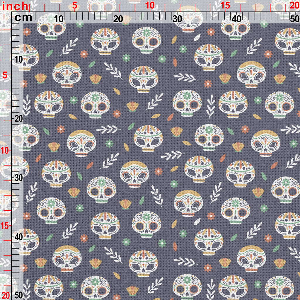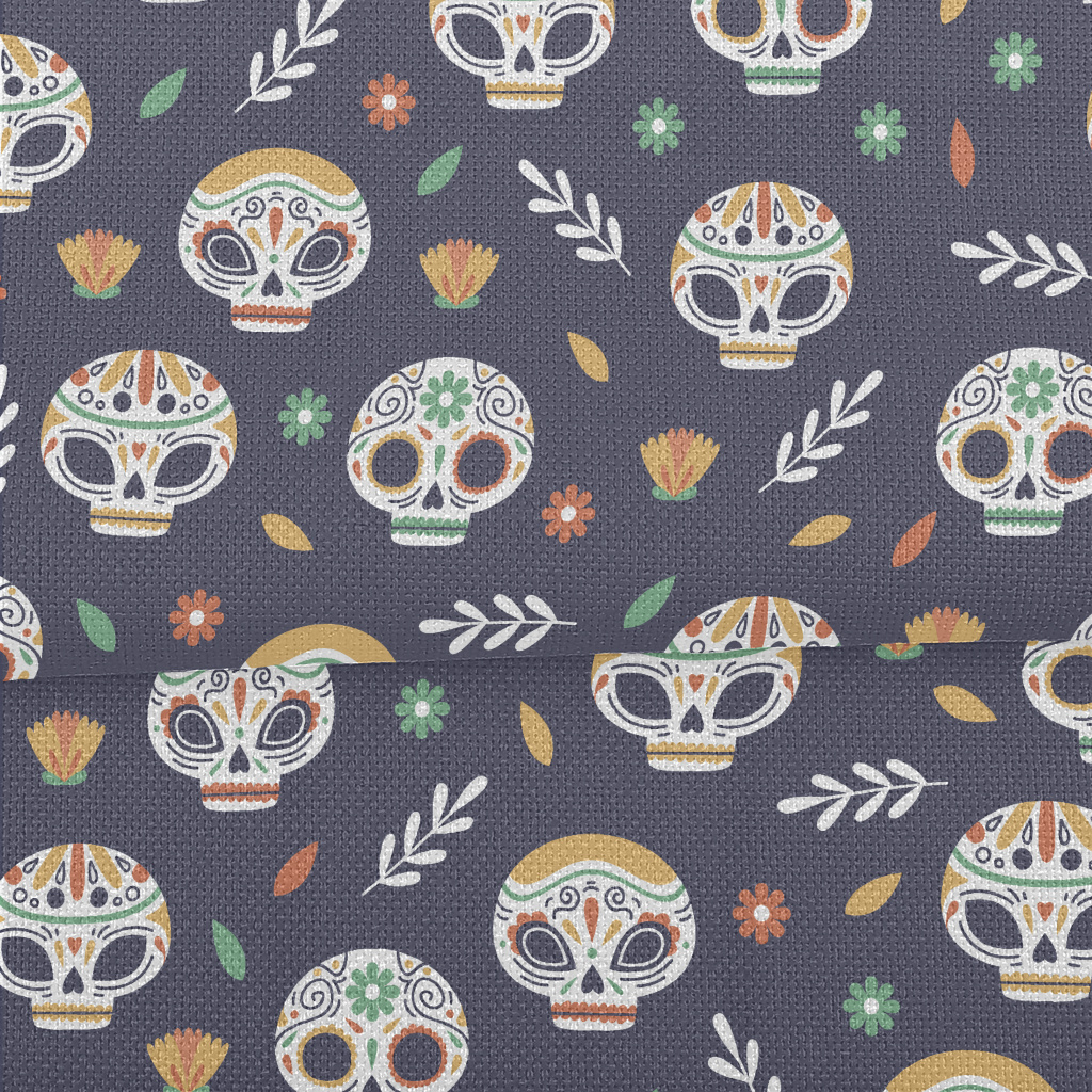 墨西科亡靈節圖案麻布(幅寬150公分)