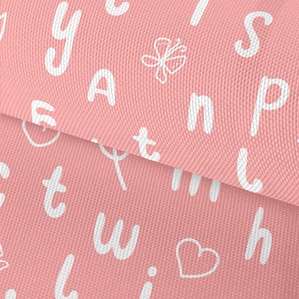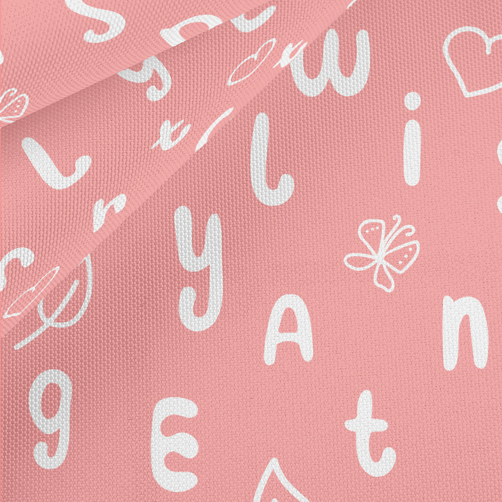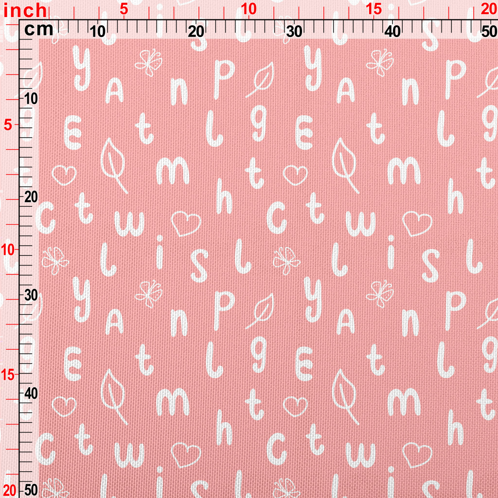 白色字母和愛心葉子牛津布(幅寬150公分)