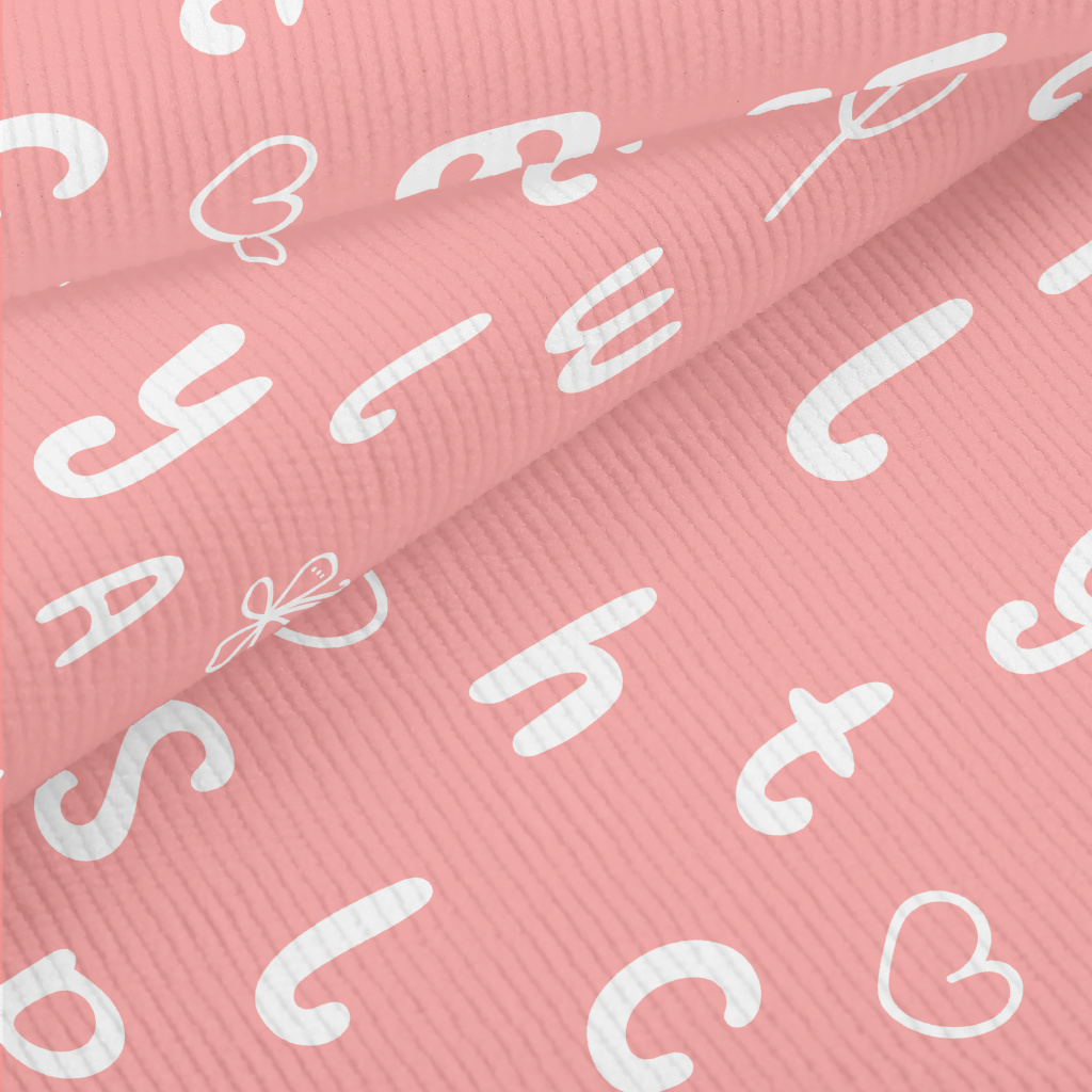 白色字母和愛心葉子燈芯絨(幅寬150公分)