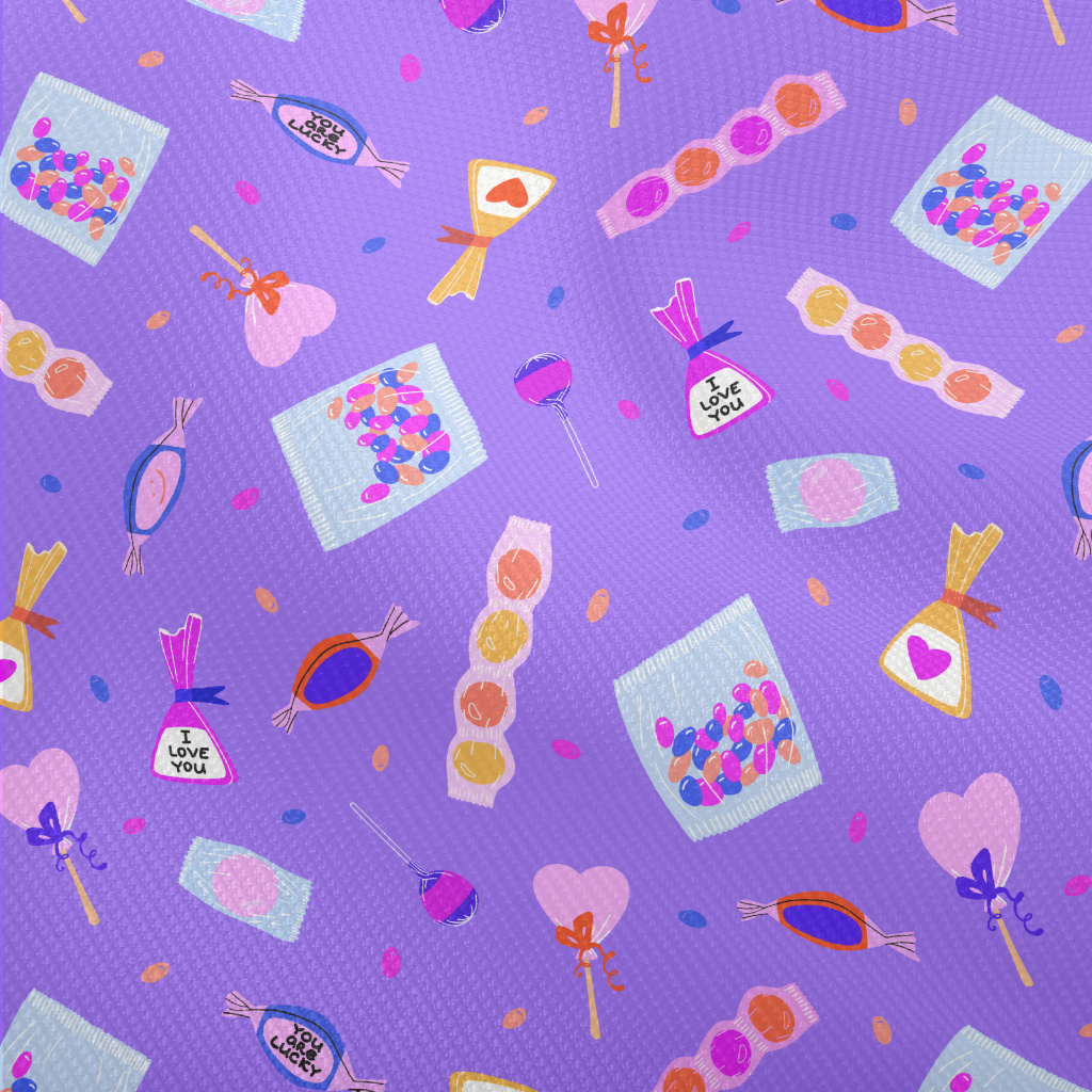 塗鴉風格各種糖果雙斜布(幅寬150公分)