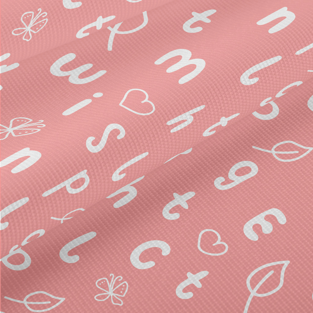 白色字母和愛心葉子雙斜布(幅寬150公分)