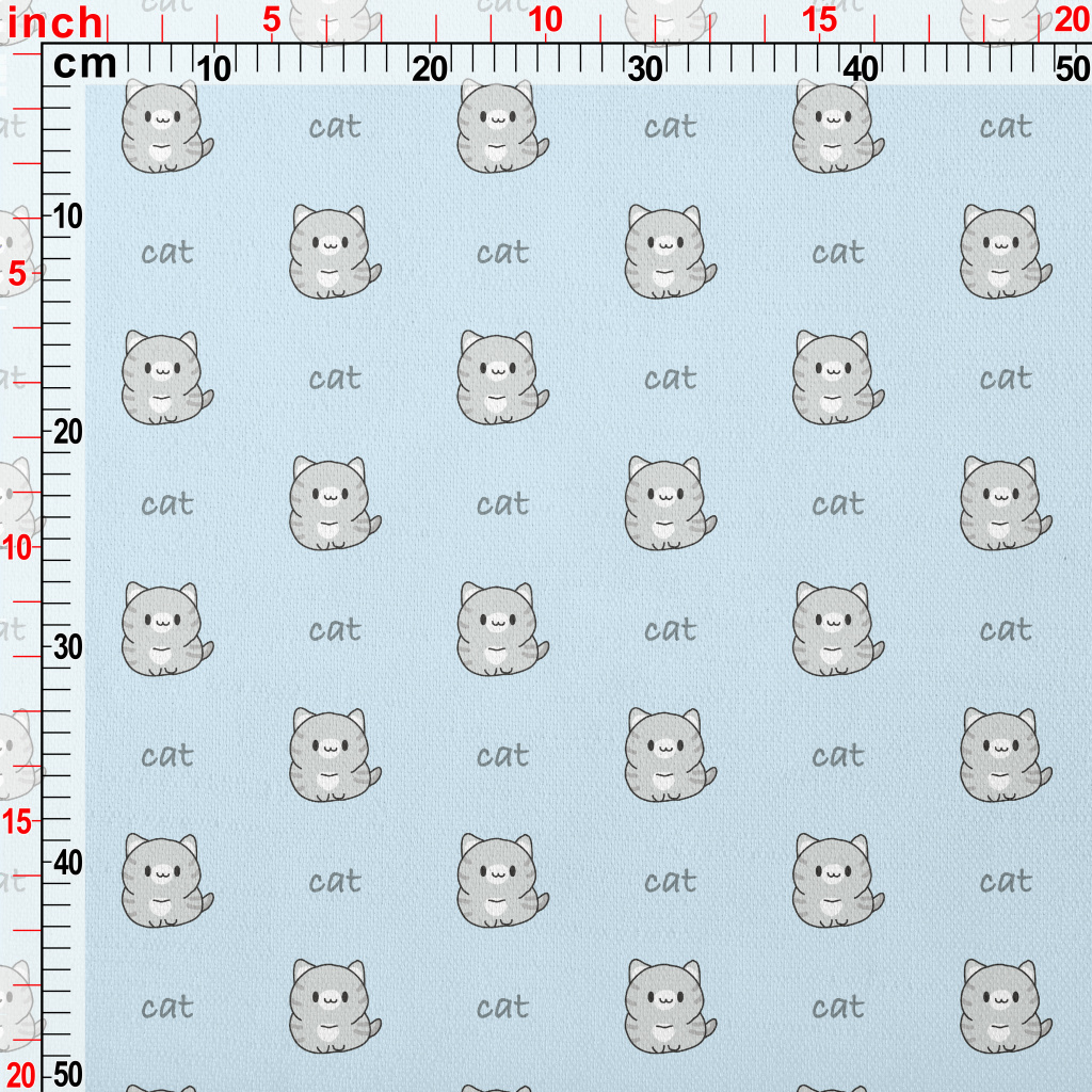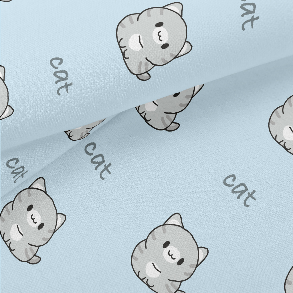 肥胖可愛灰色貓咪竹節麻(幅寬150公分)