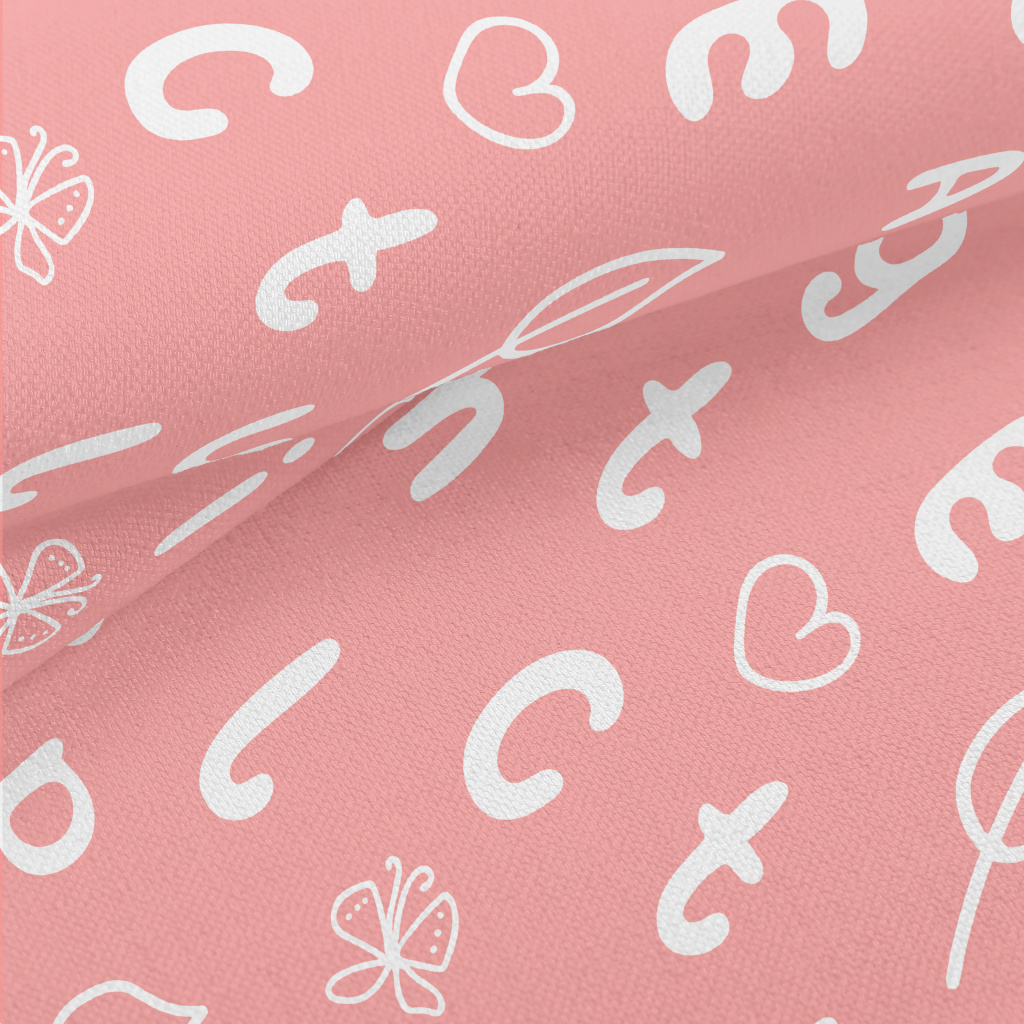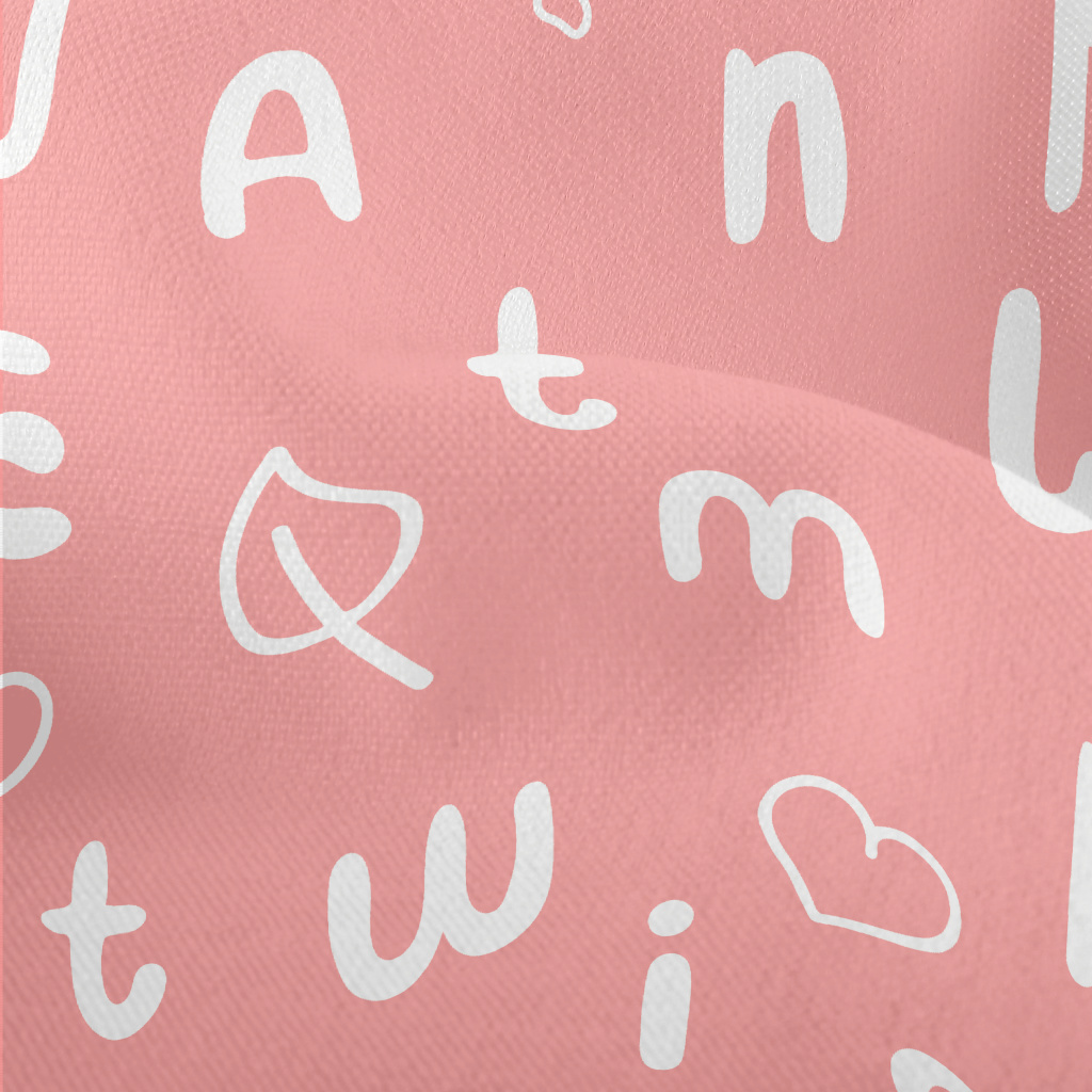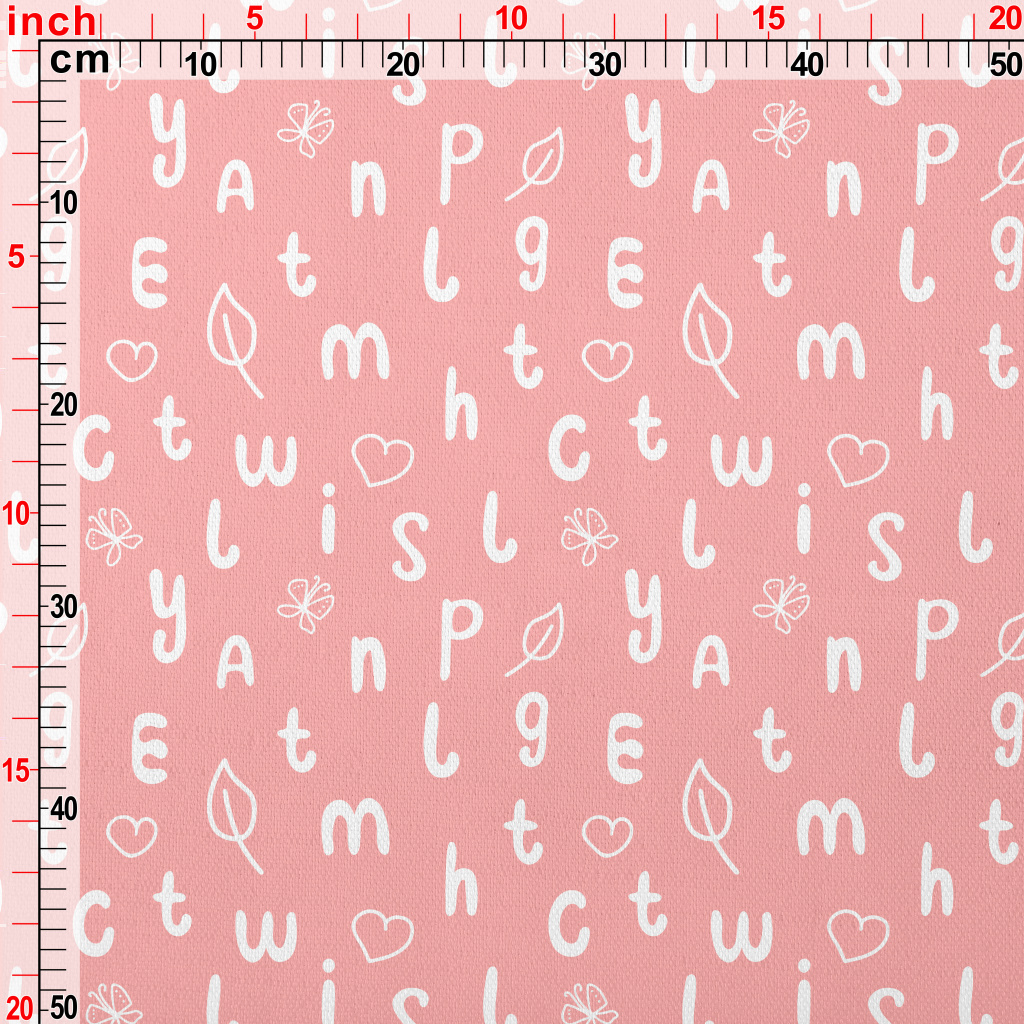 白色字母和愛心葉子竹節麻(幅寬150公分)