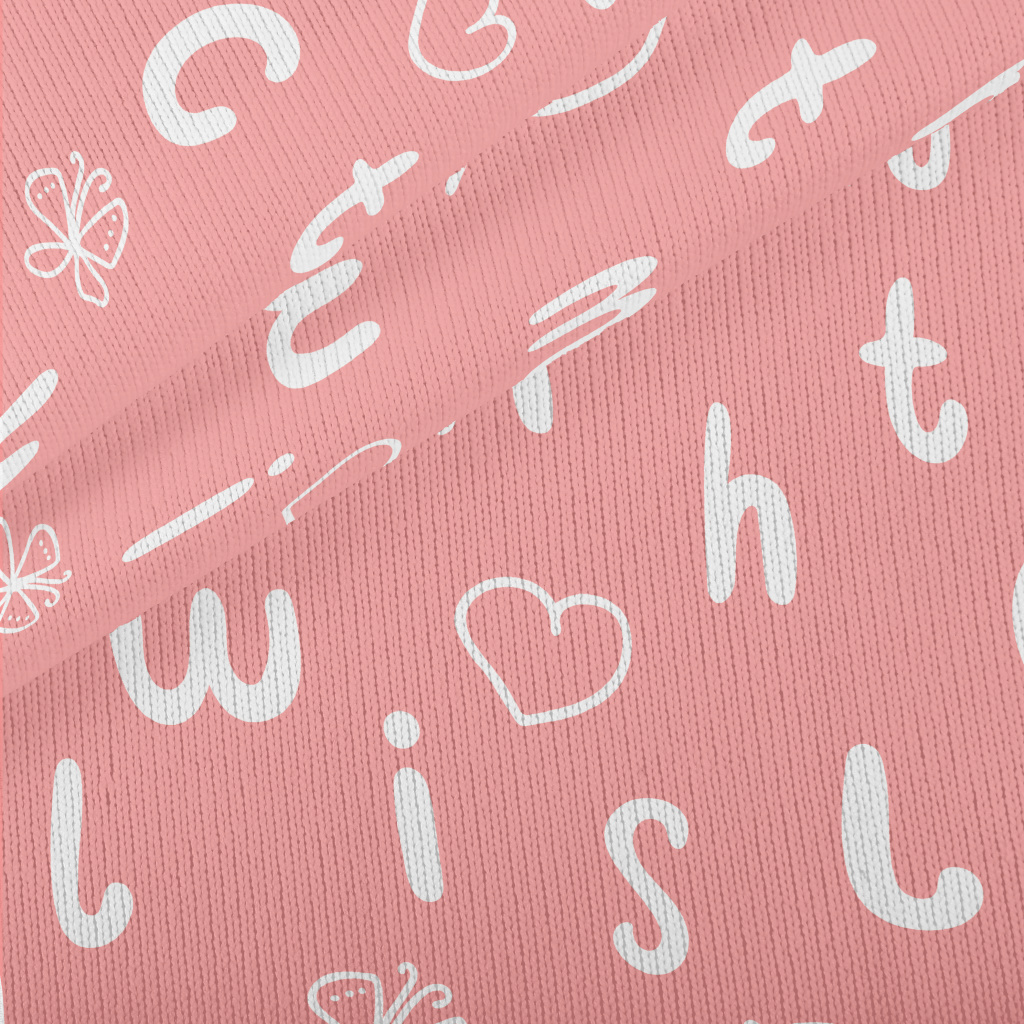 白色字母和愛心葉子仿毛衣布(幅寬150公分)