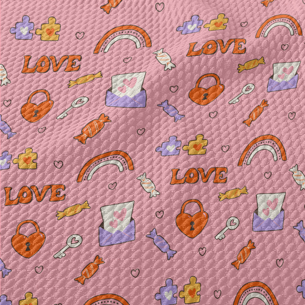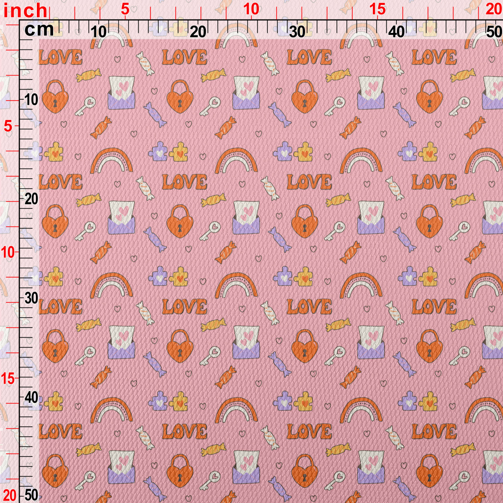 彩虹愛心鎖糖果圖案泡泡布(幅寬160公分)