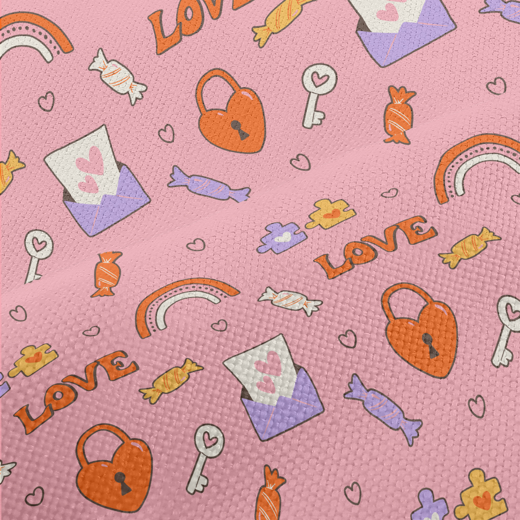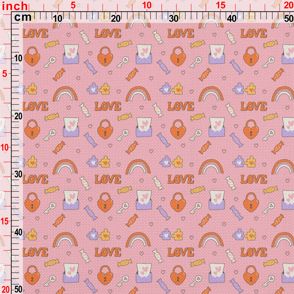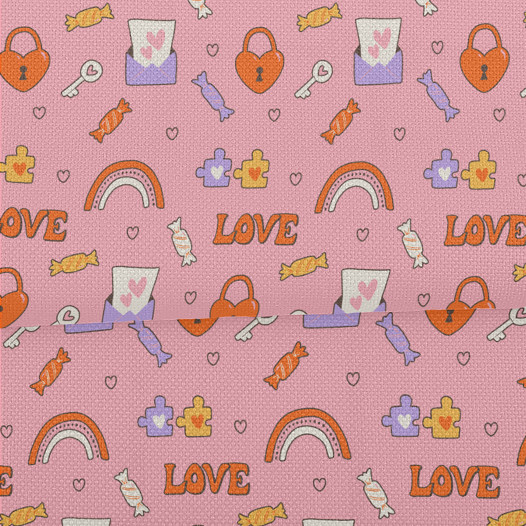 彩虹愛心鎖糖果圖案麻布(幅寬150公分)