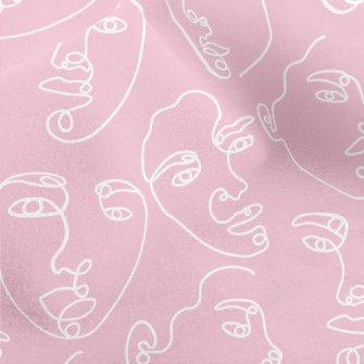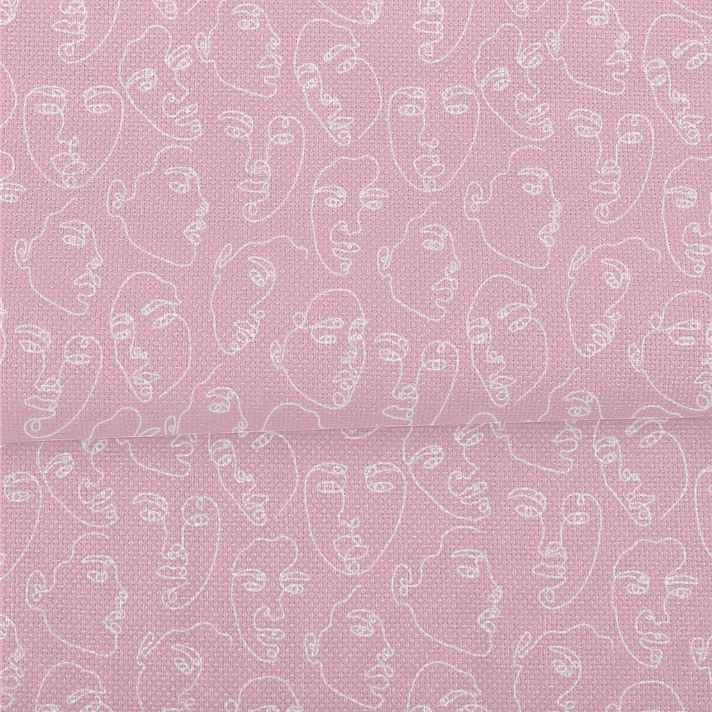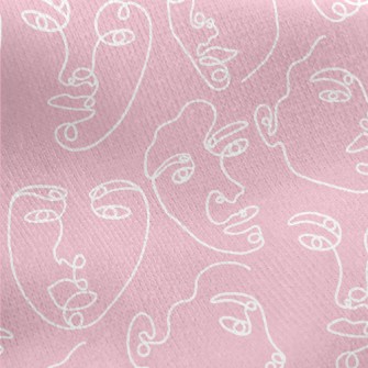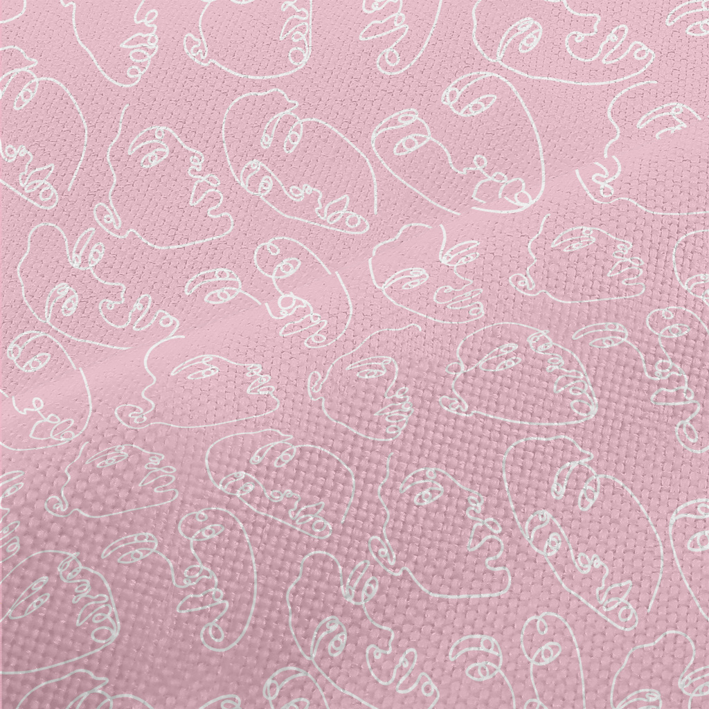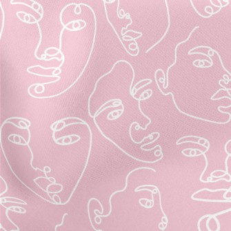 一條線畫抽象臉麻布(幅寬150公分)