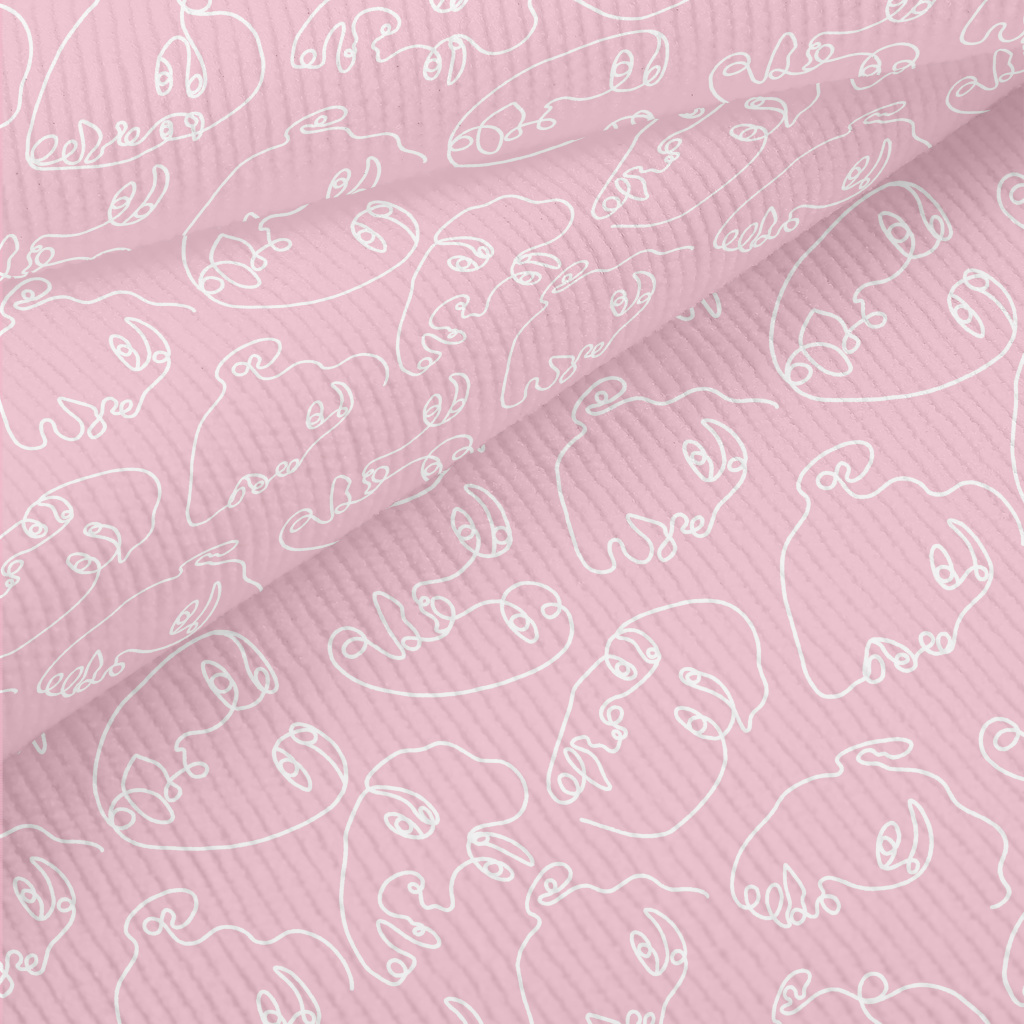 一條線畫抽象臉燈芯絨(幅寬150公分)