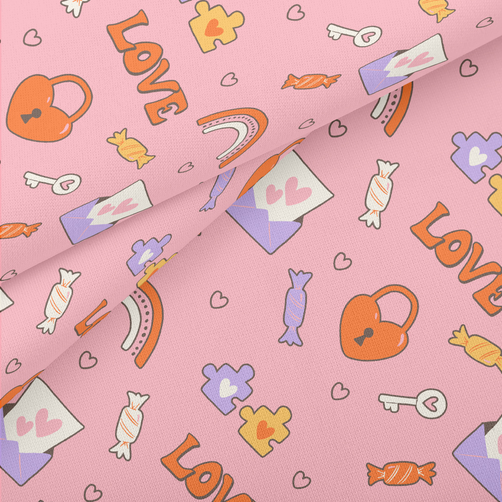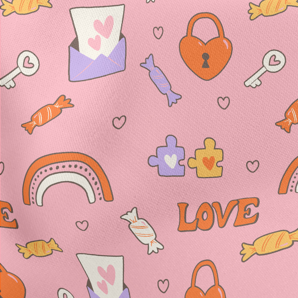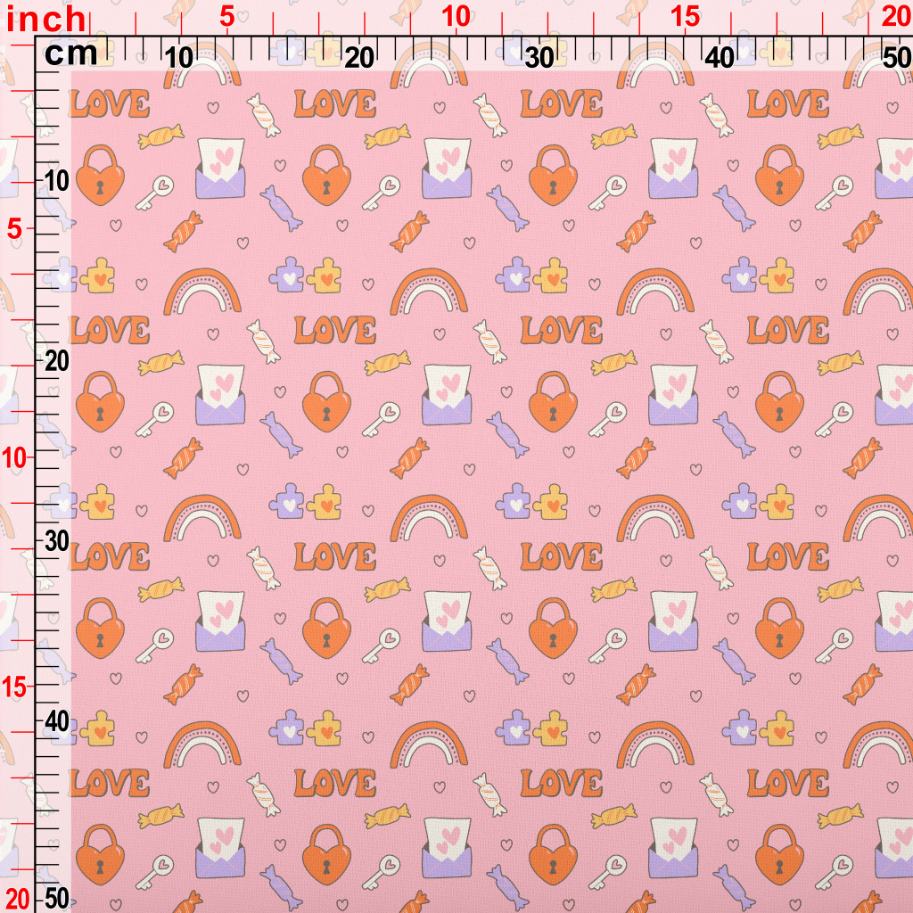 彩虹愛心鎖糖果圖案羅馬布(幅寬160公分)