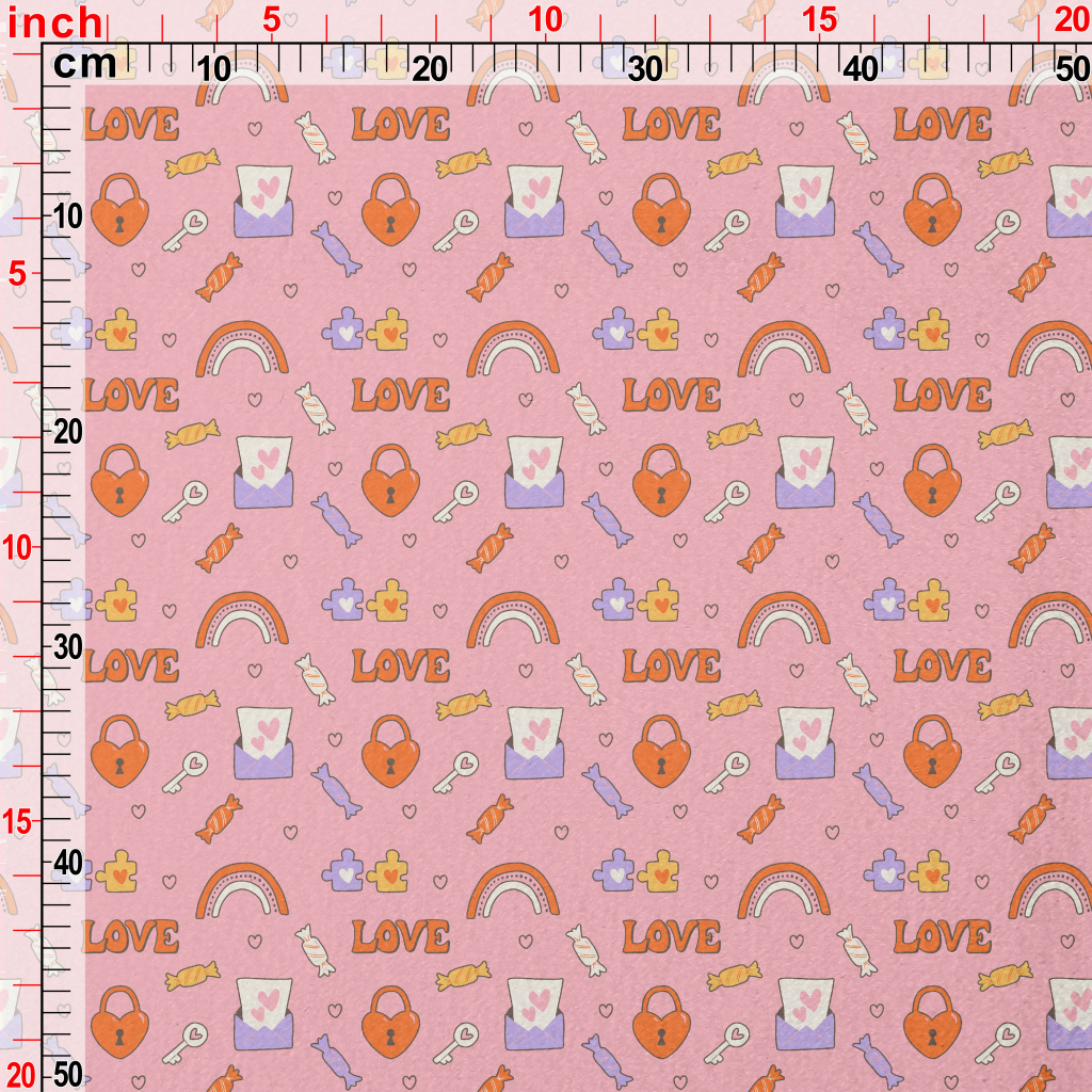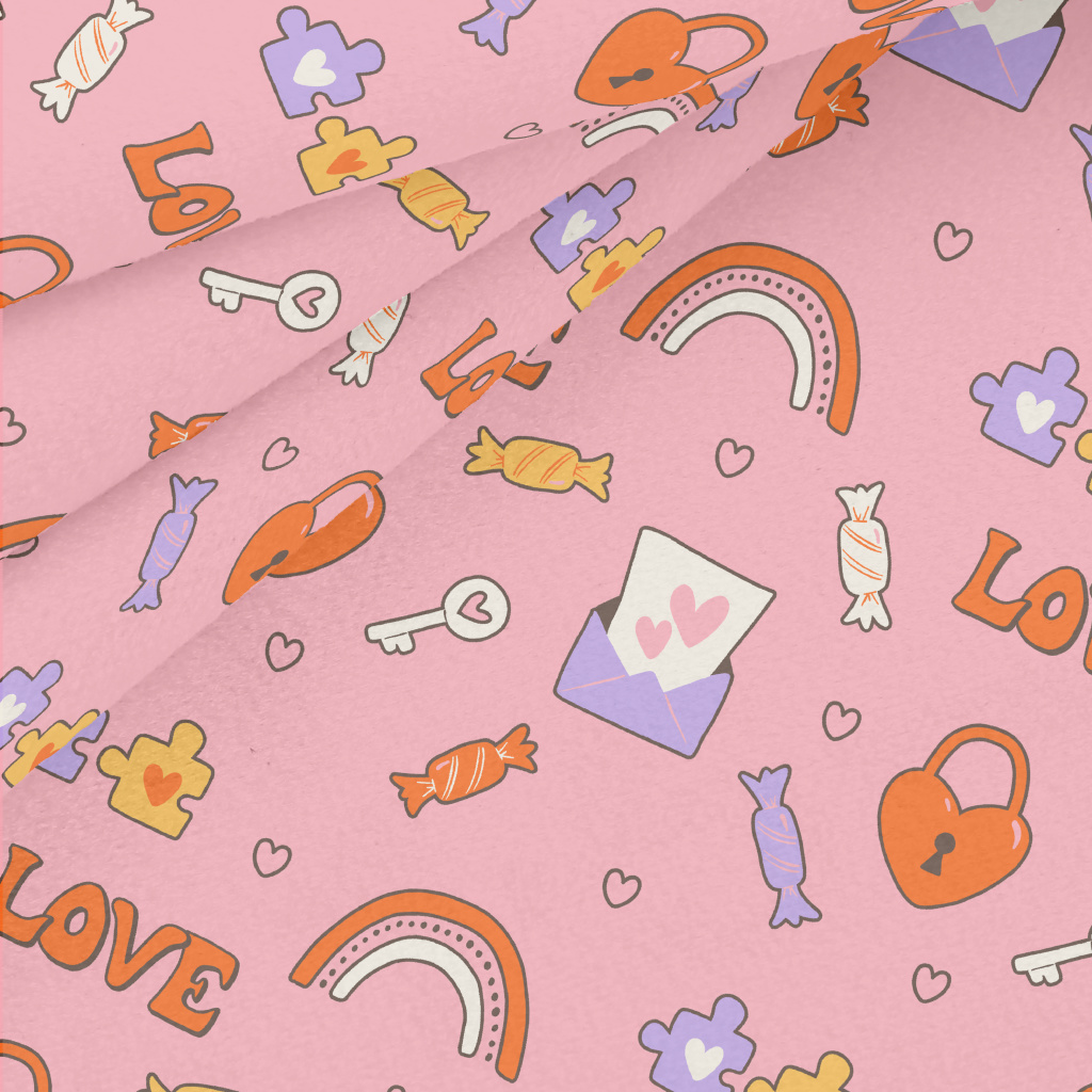 彩虹愛心鎖糖果圖案水晶絨(幅寬160公分)