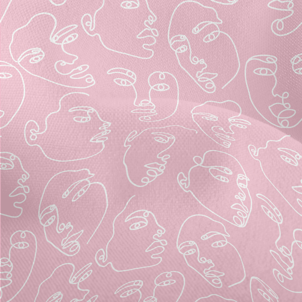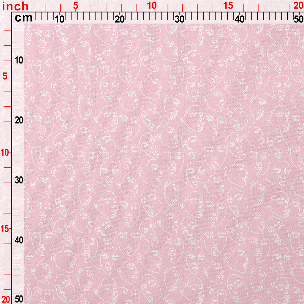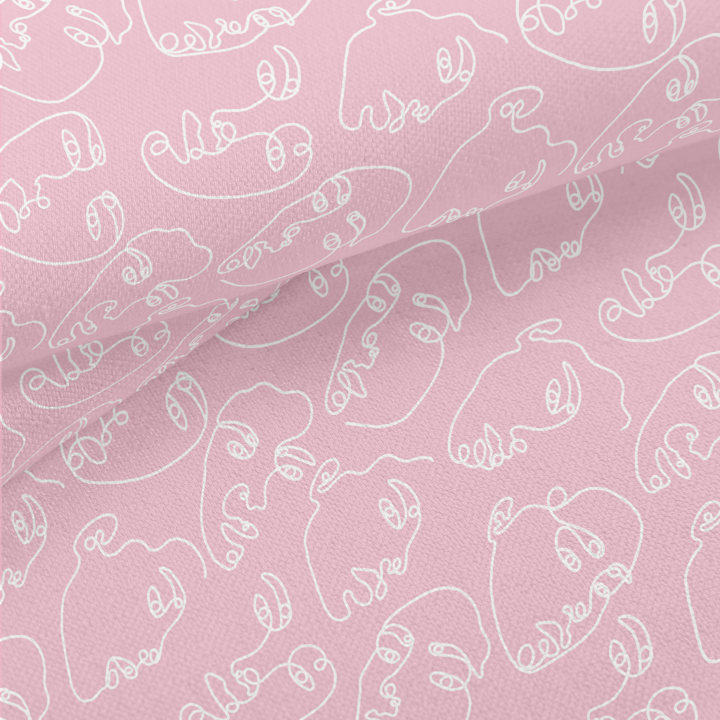 一條線畫抽象臉竹節麻(幅寬150公分)
