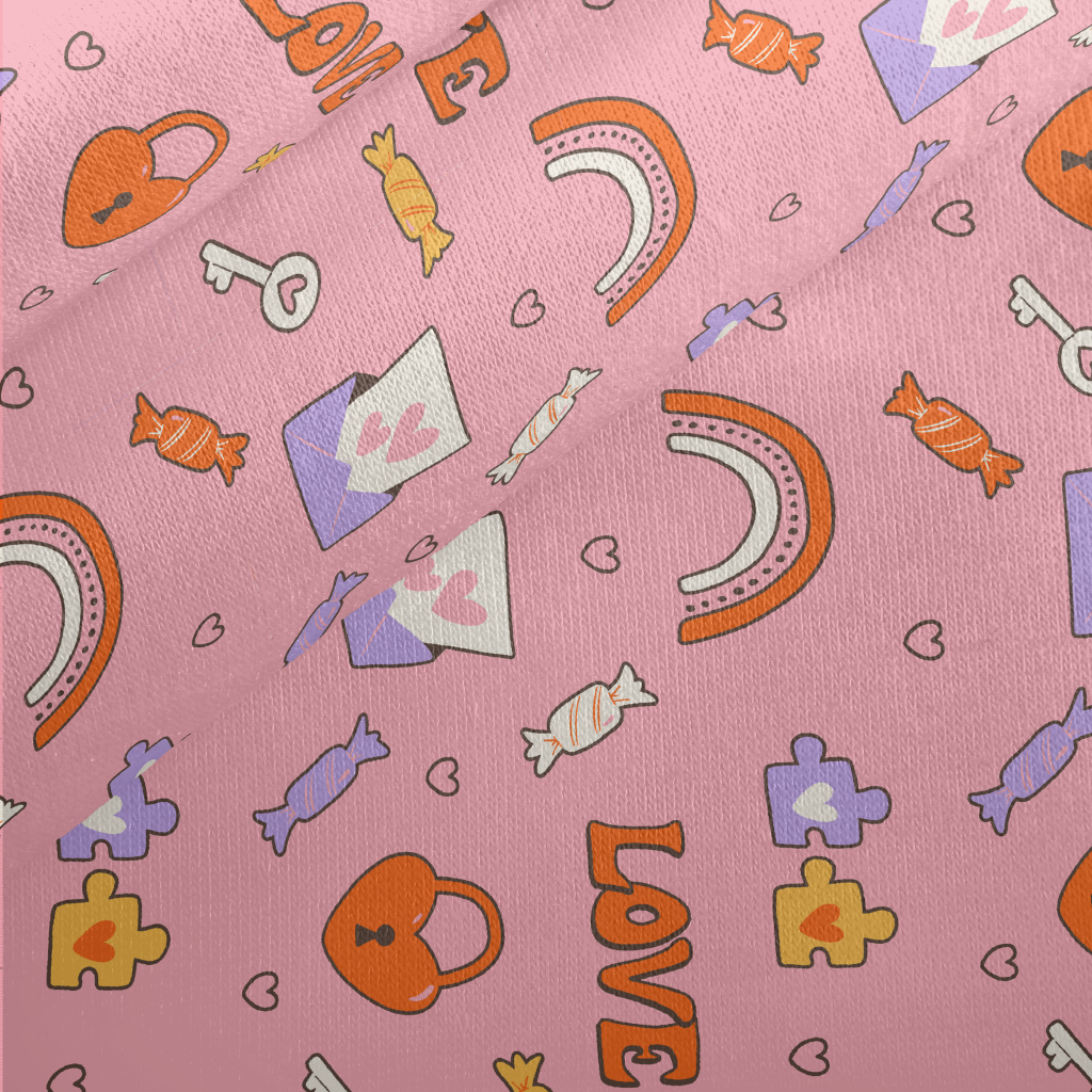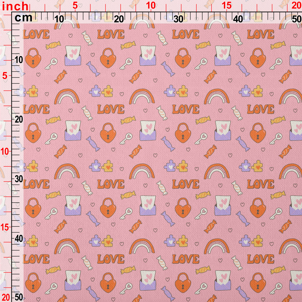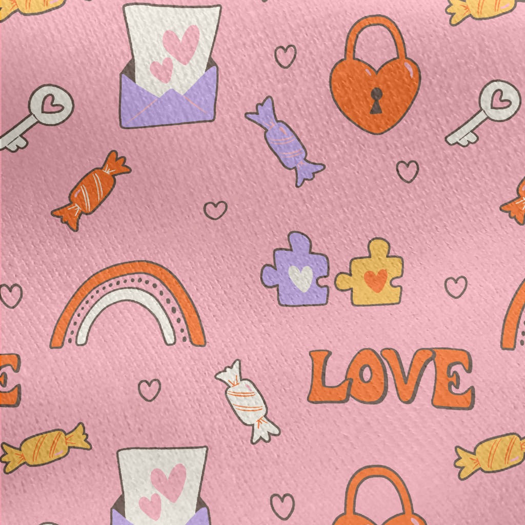 彩虹愛心鎖糖果圖案刷毛布(幅寬150公分)