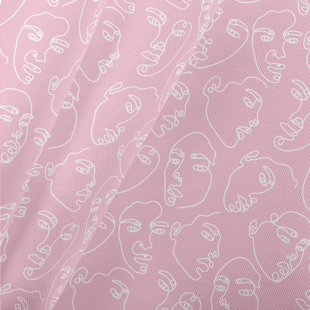 一條線畫抽象臉春亞紡(幅寬160公分)
