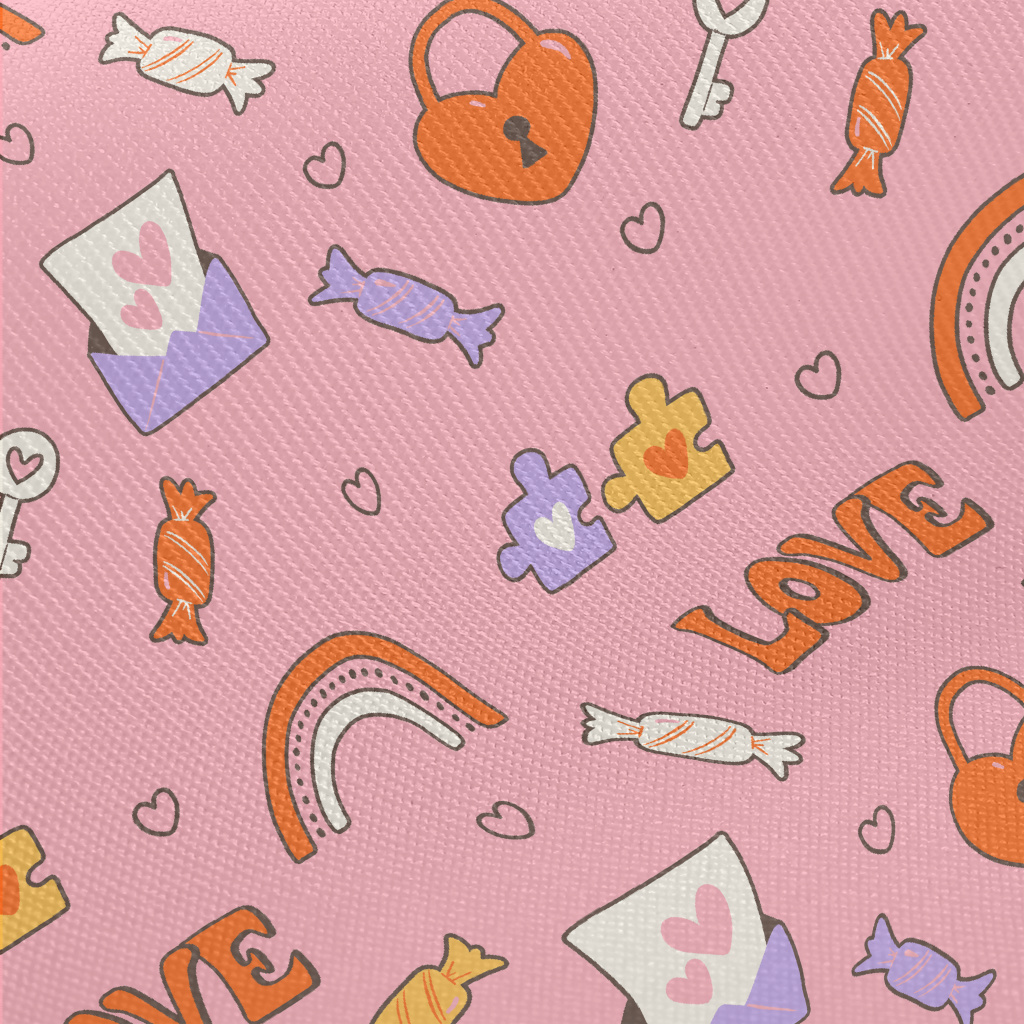 彩虹愛心鎖糖果圖案厚棉布(幅寬150公分)