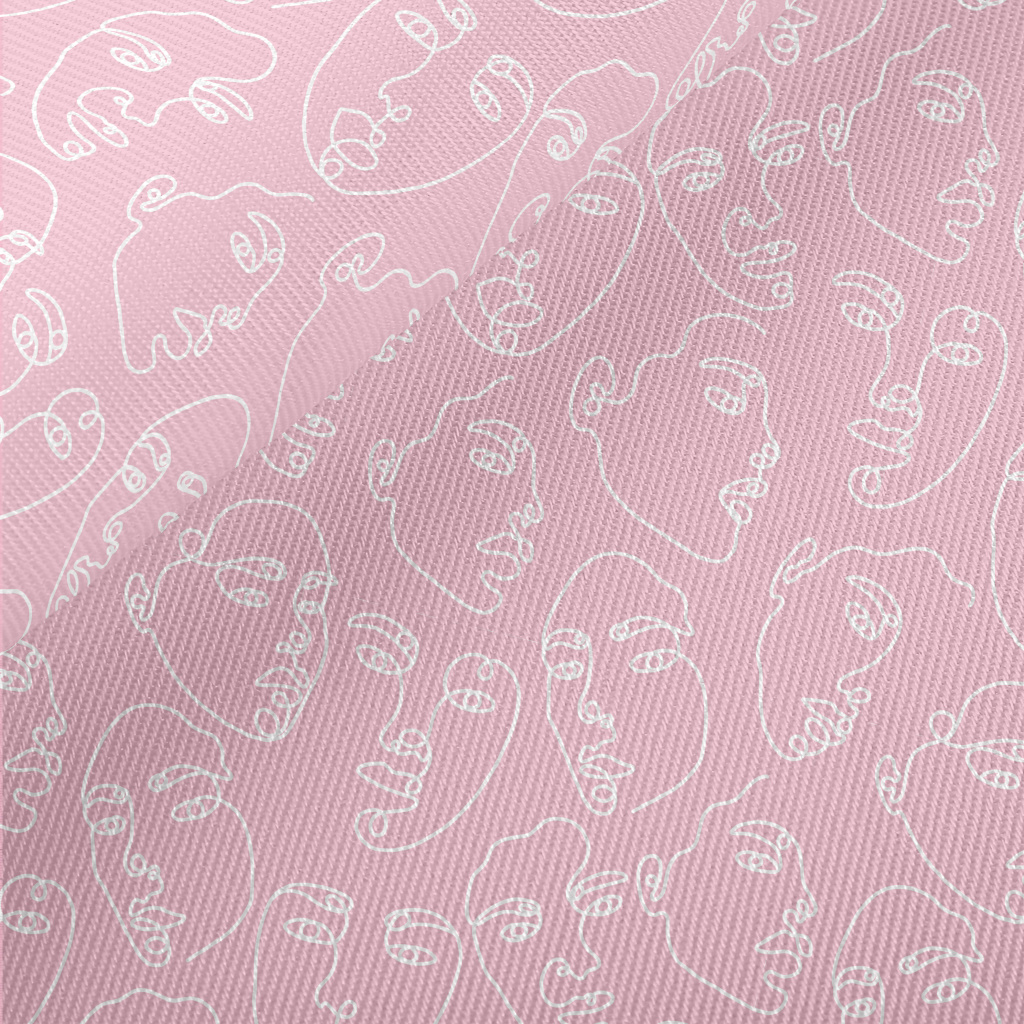 一條線畫抽象臉厚棉布(幅寬150公分)