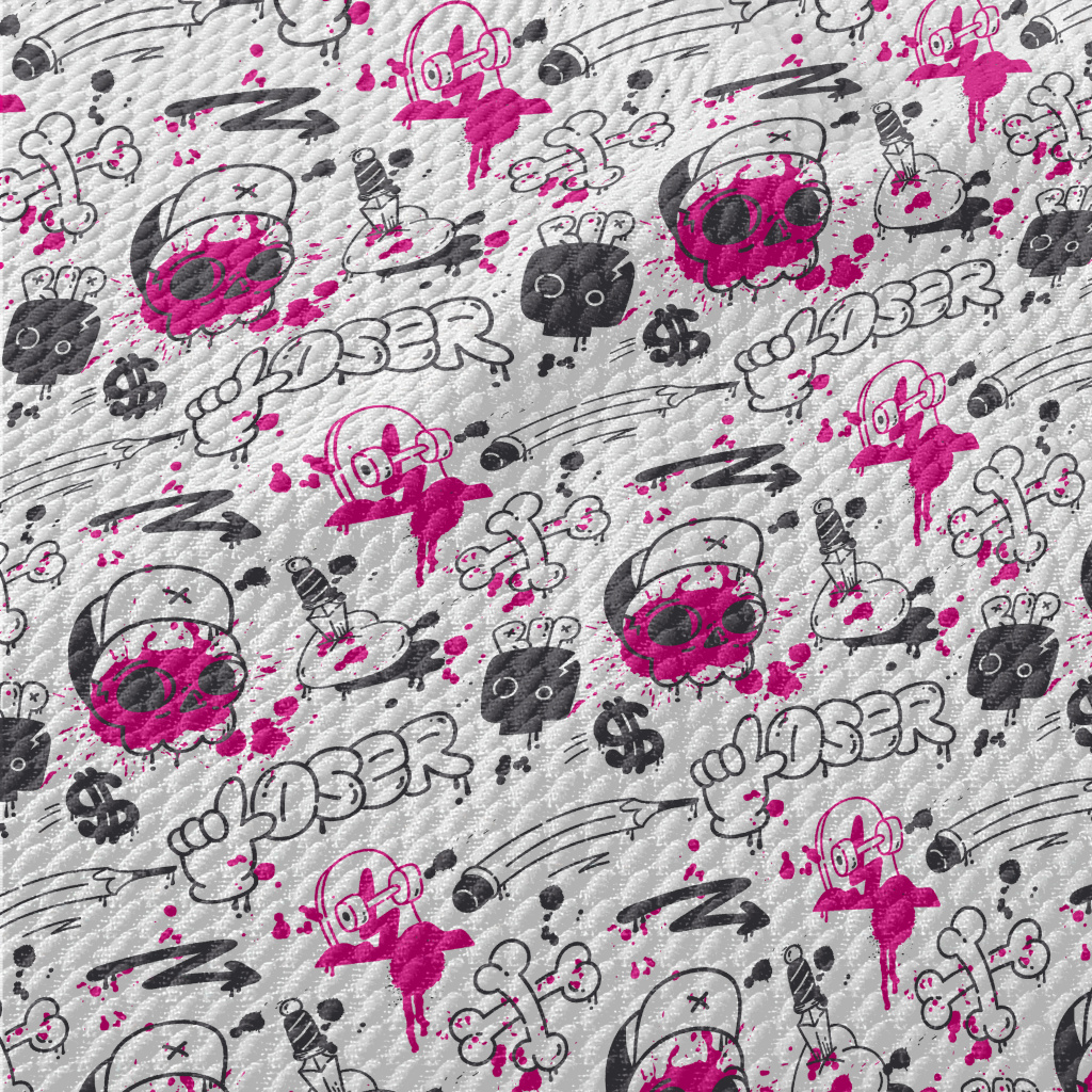 美式塗鴉骷髏與愛心滑板泡泡布(幅寬160公分)