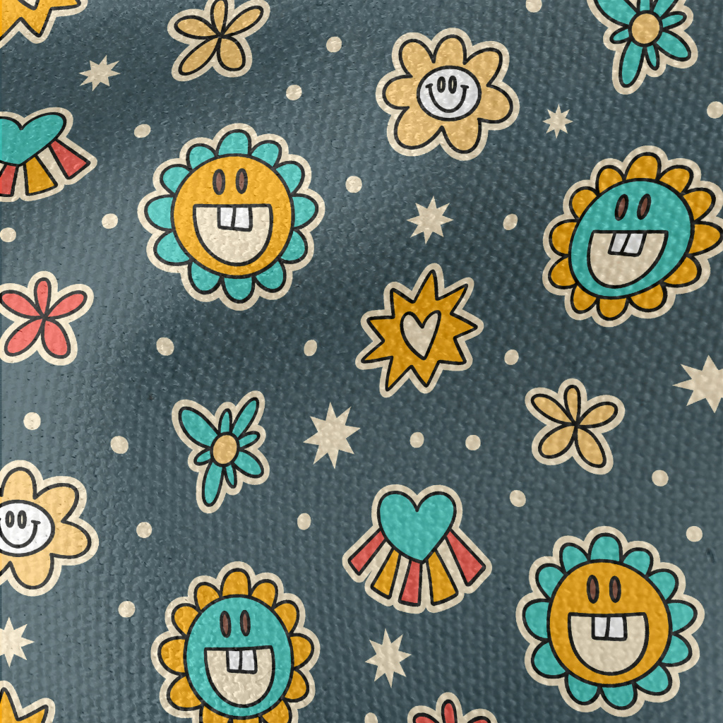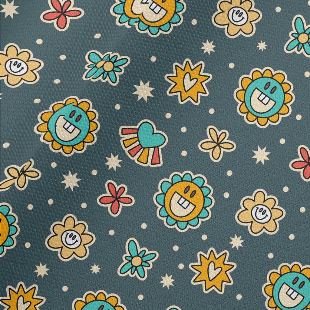 微笑花朵愛心星星帆布(幅寬150公分)