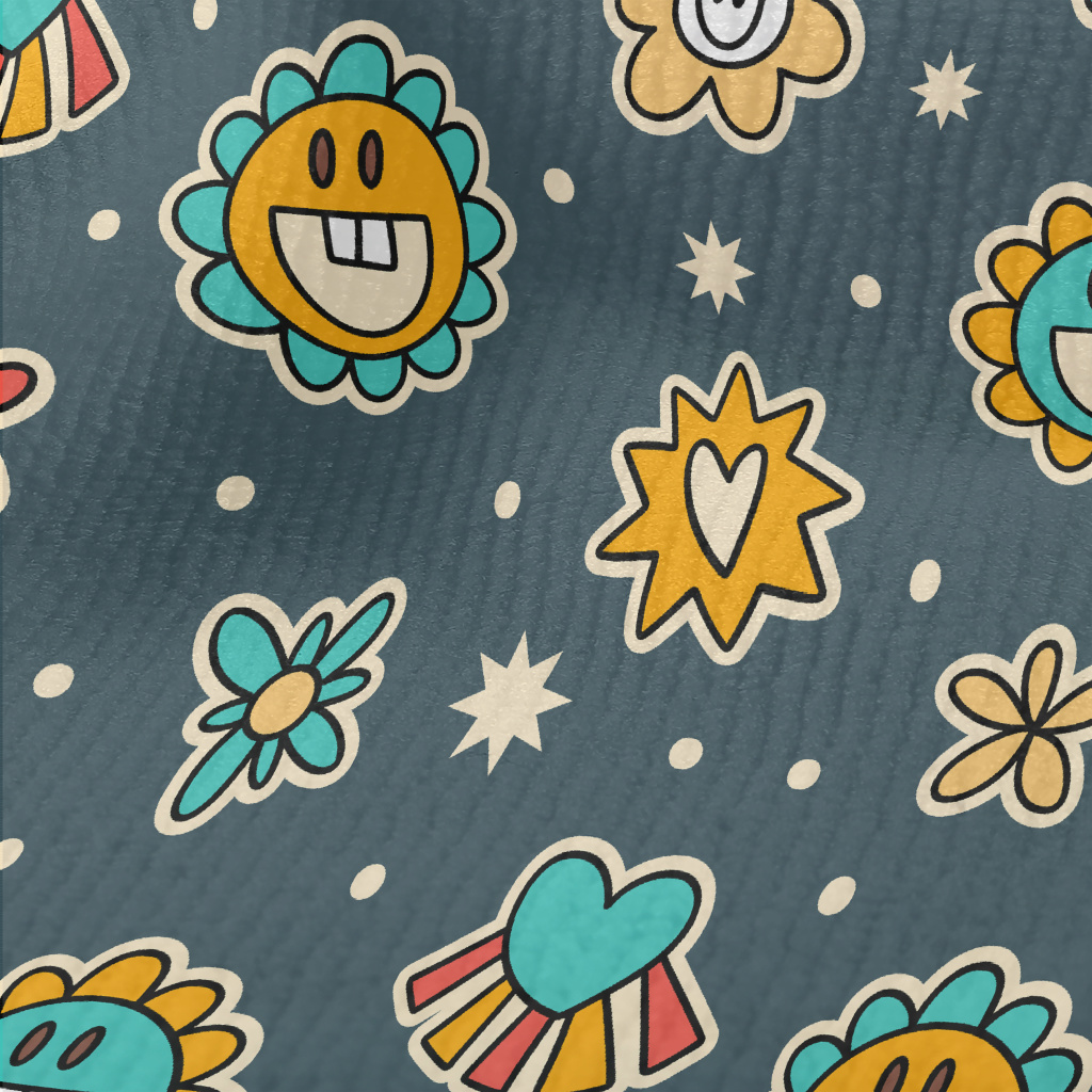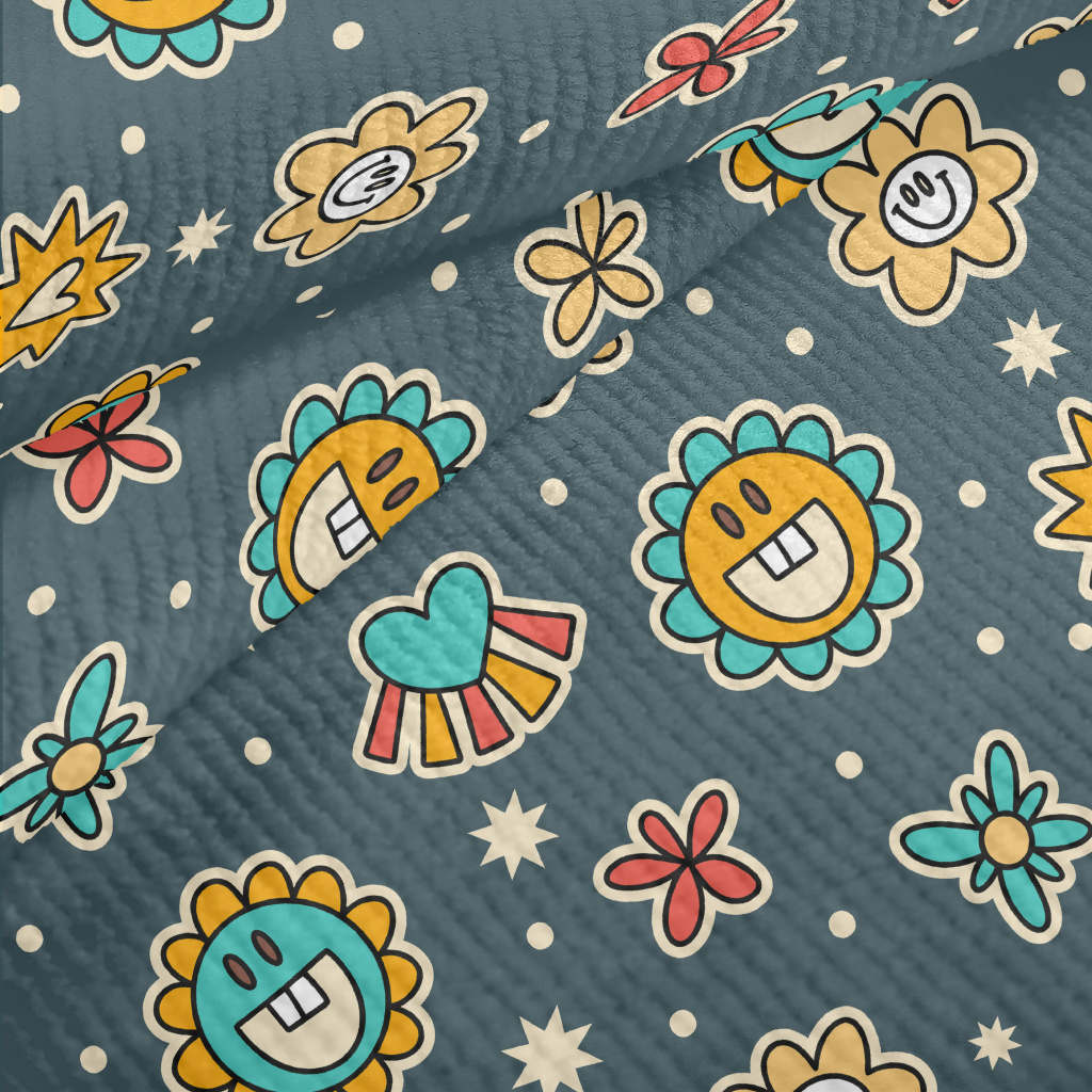 微笑花朵愛心星星毛巾布(幅寬160公分)