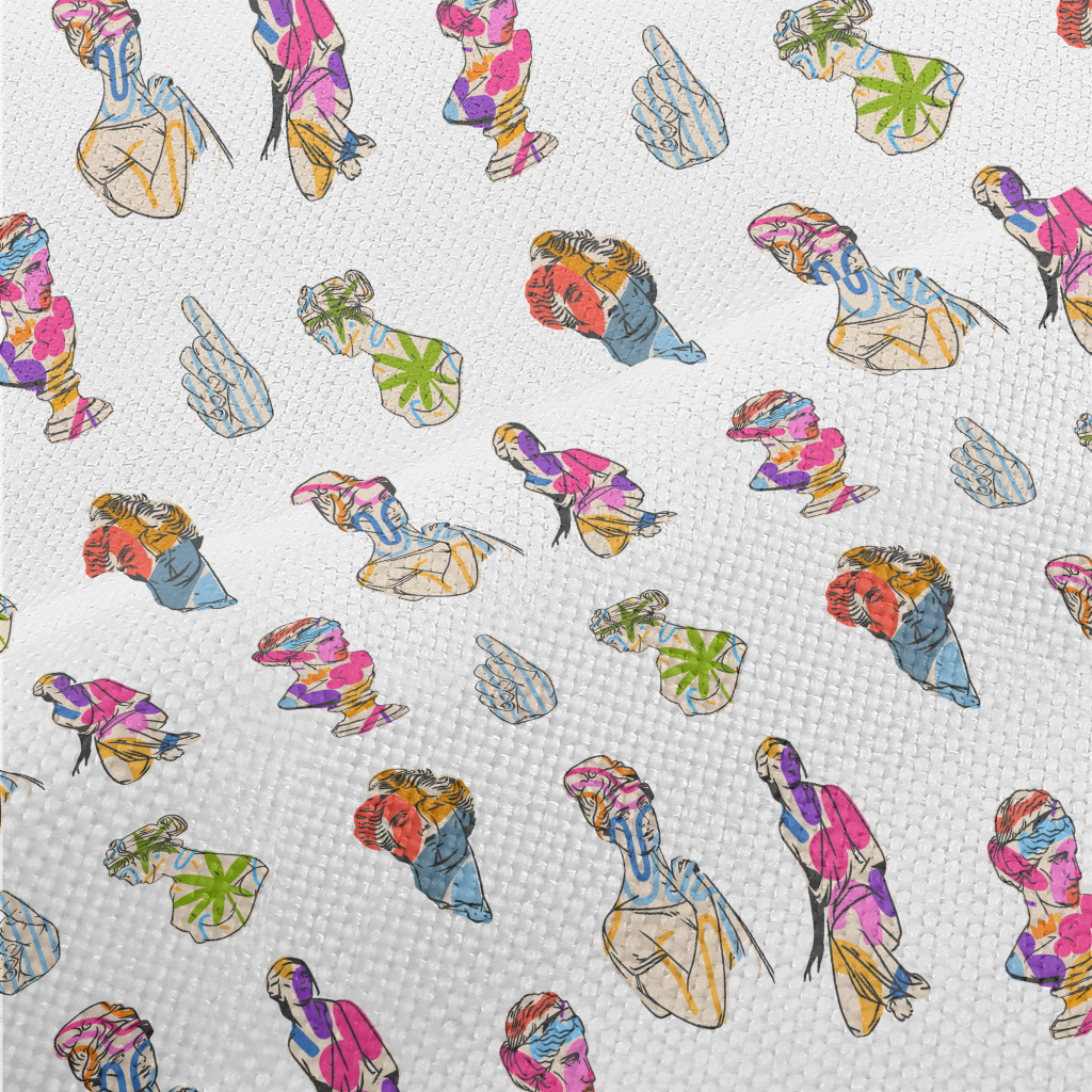 彩色繪圖希臘雕像麻布(幅寬150公分)