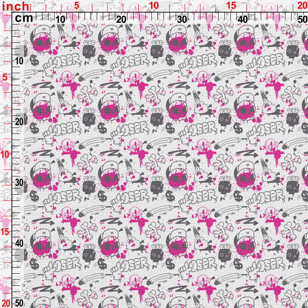 美式塗鴉骷髏與愛心滑板麻布(幅寬150公分)