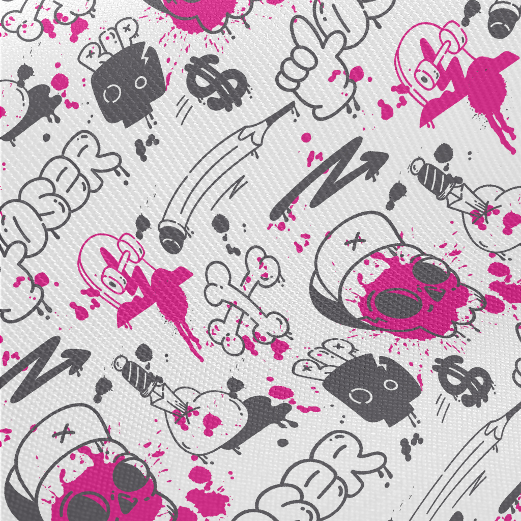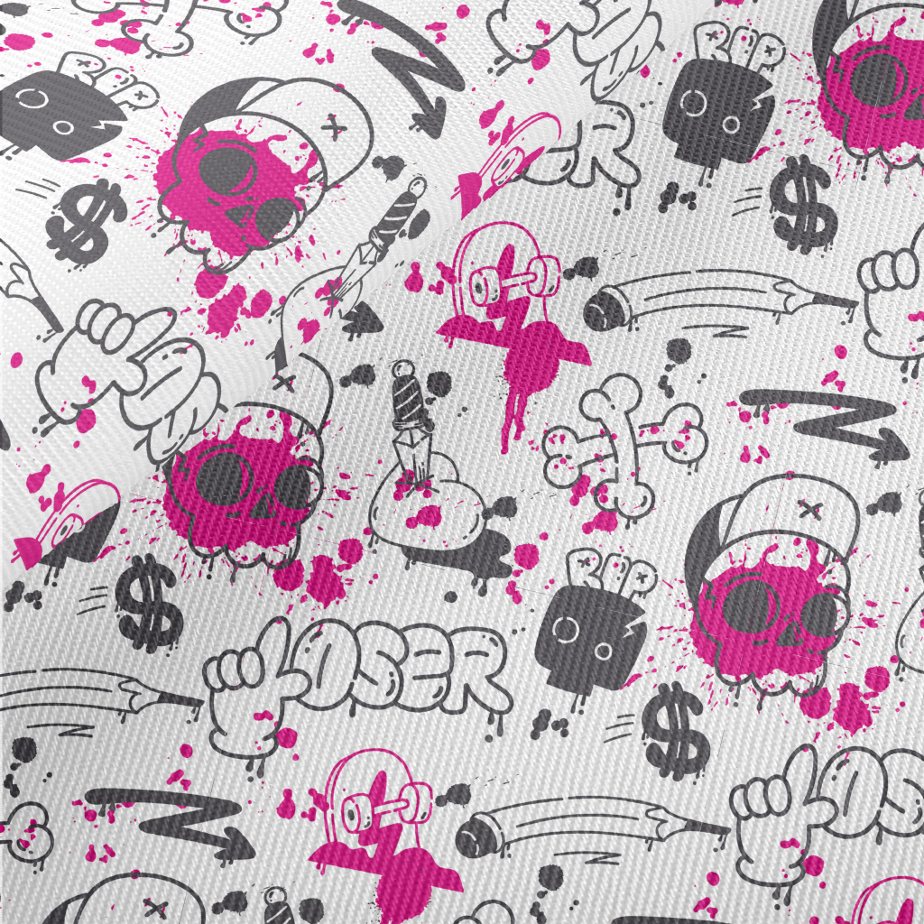 美式塗鴉骷髏與愛心滑板斜紋布(幅寬150公分)