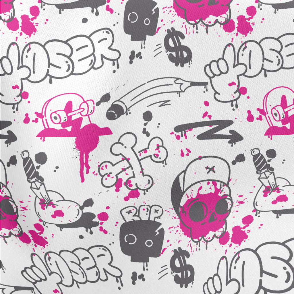 美式塗鴉骷髏與愛心滑板羅馬布(幅寬160公分)