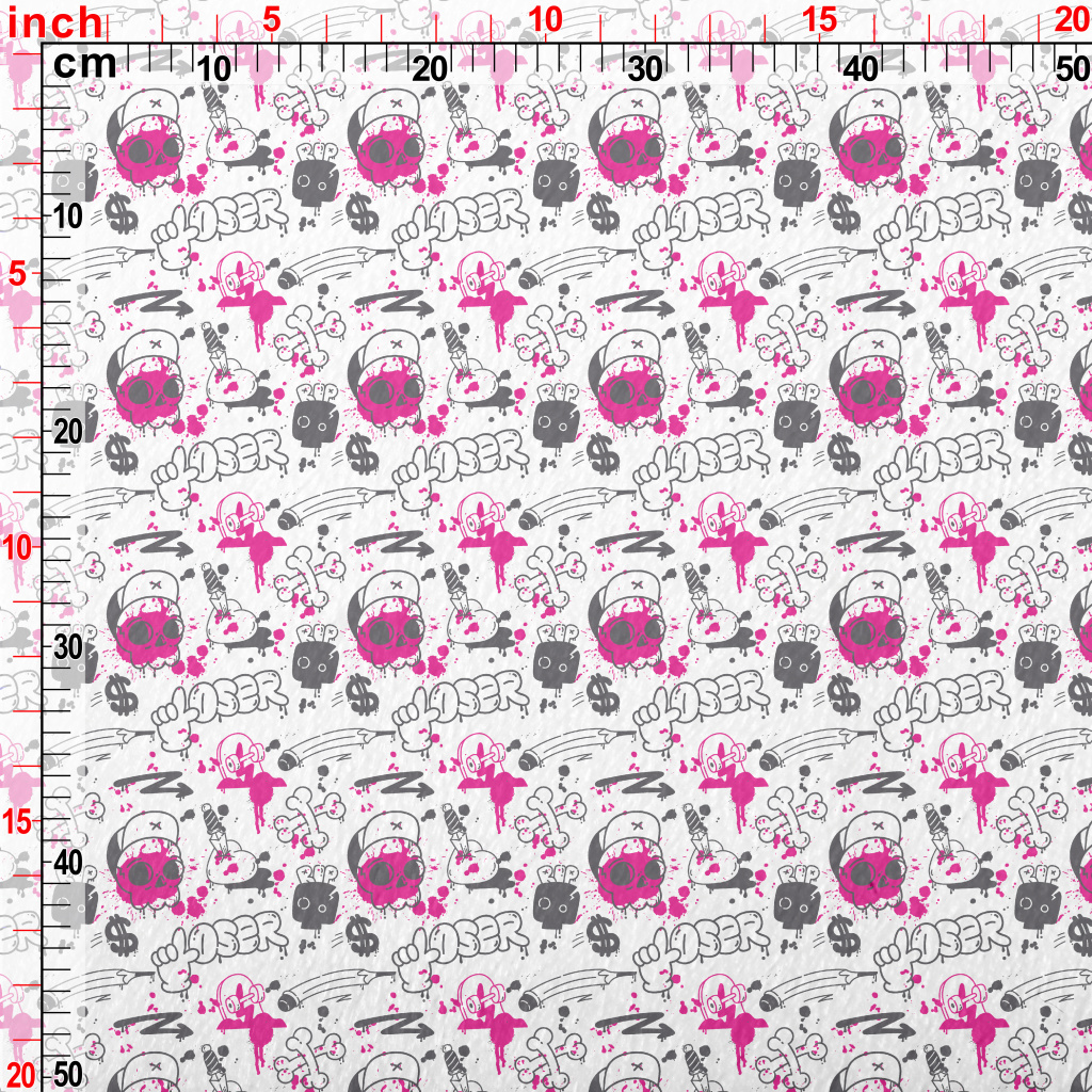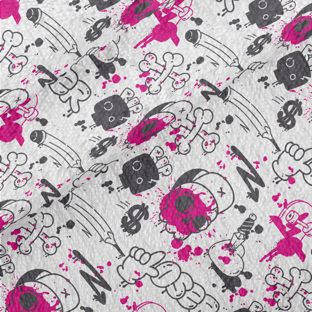 美式塗鴉骷髏與愛心滑板法蘭絨(幅寬150公分)