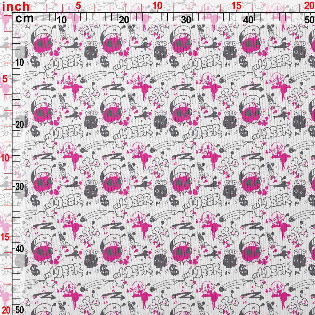 美式塗鴉骷髏與愛心滑板仿毛衣布(幅寬150公分)
