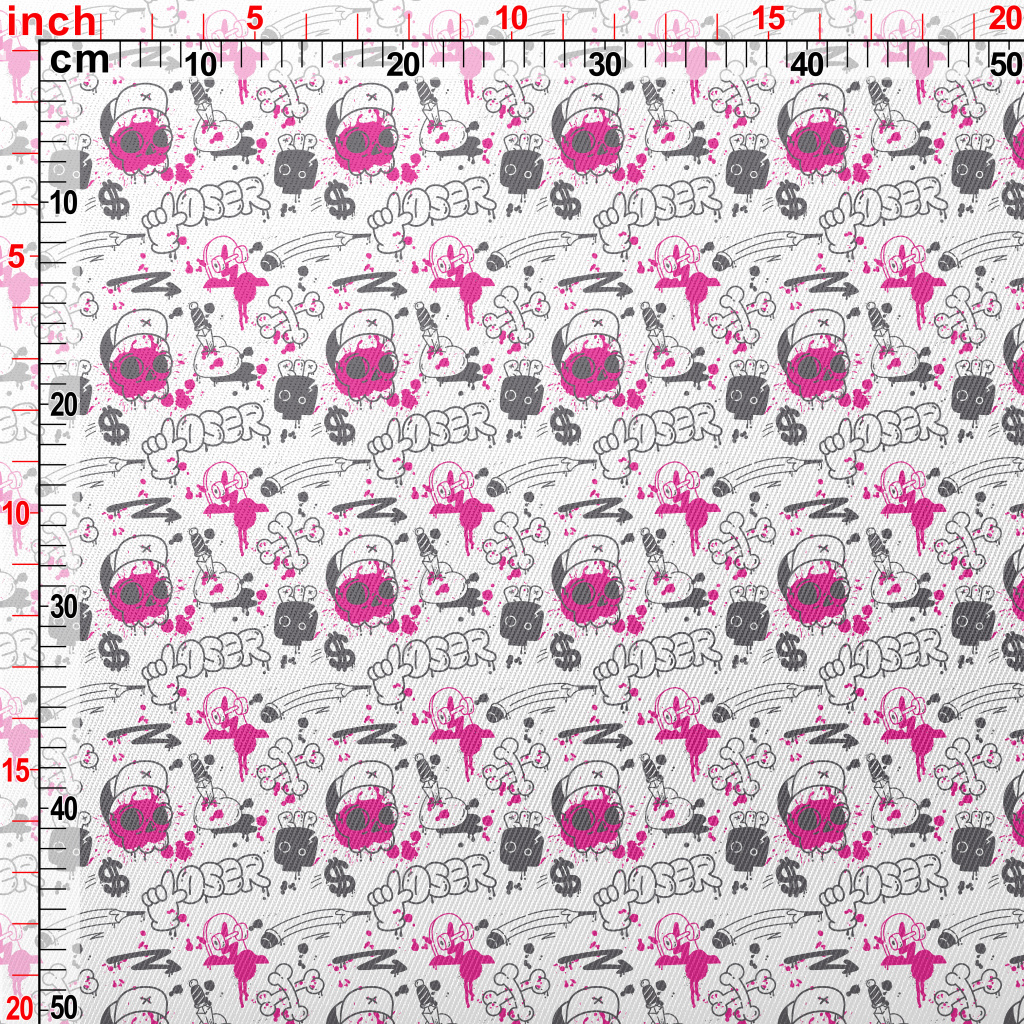 美式塗鴉骷髏與愛心滑板厚棉布(幅寬150公分)