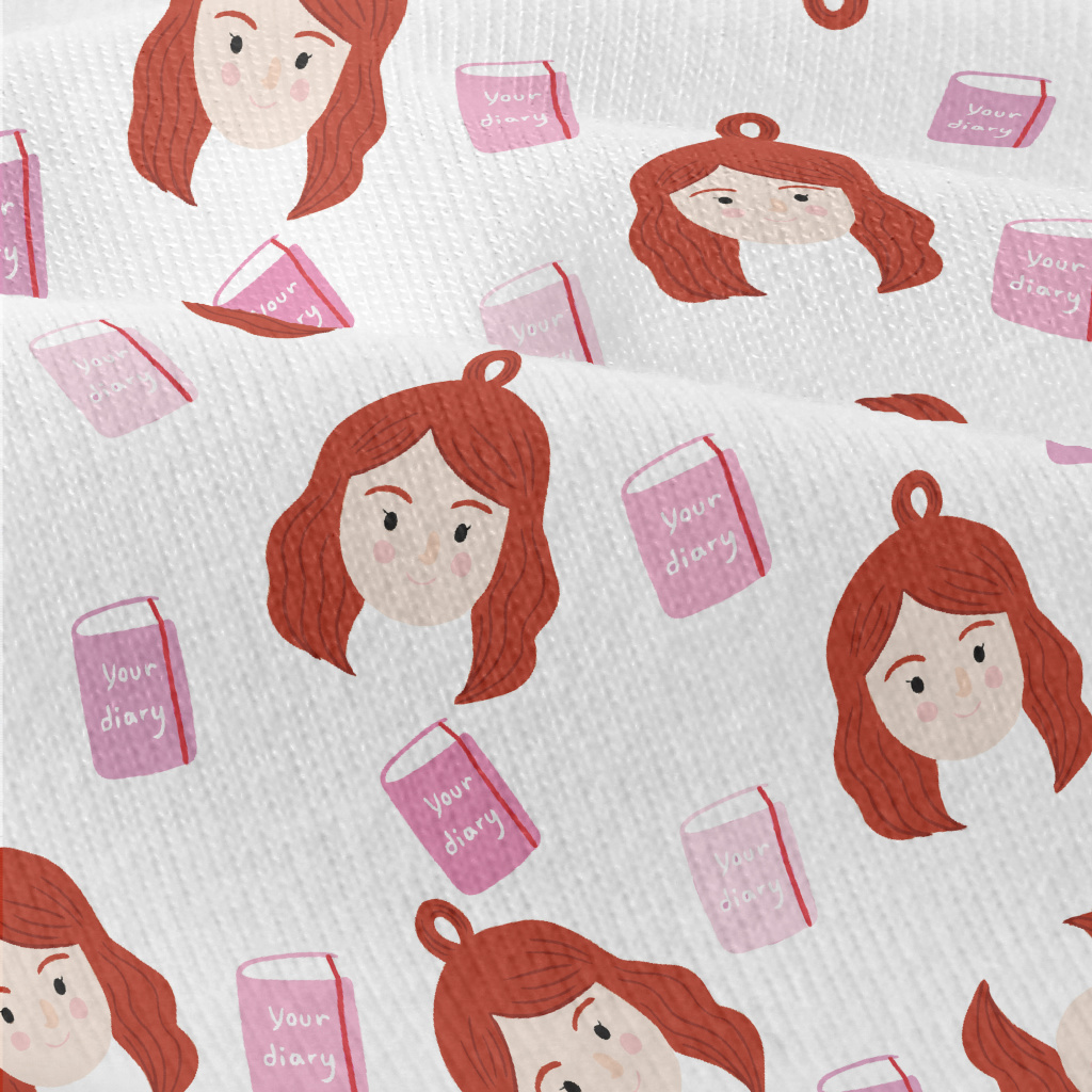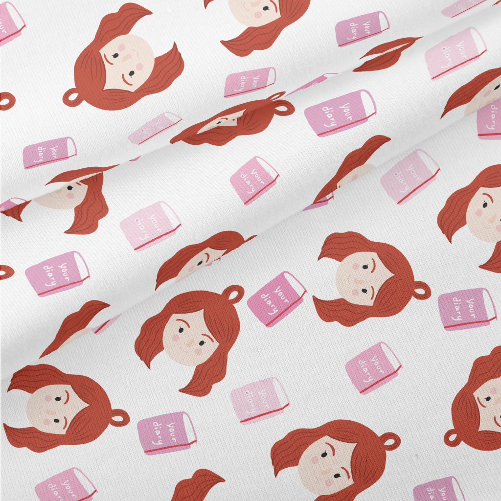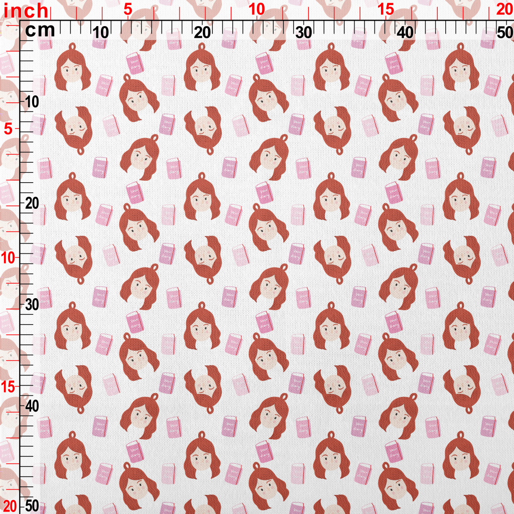 可愛女孩和書本仿棉布(幅寬150公分)