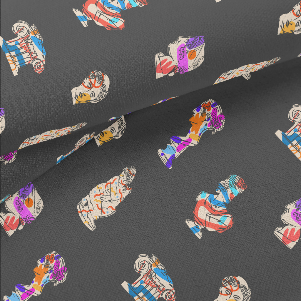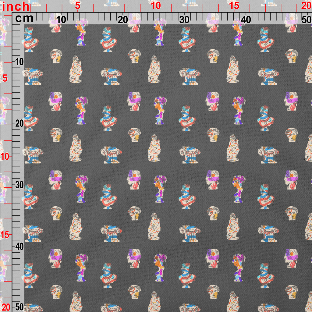 手繪抽象希臘古雕塑竹節麻(幅寬150公分)