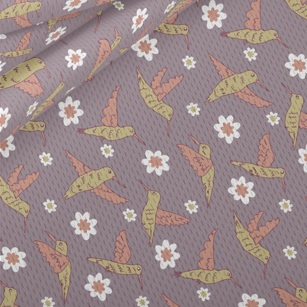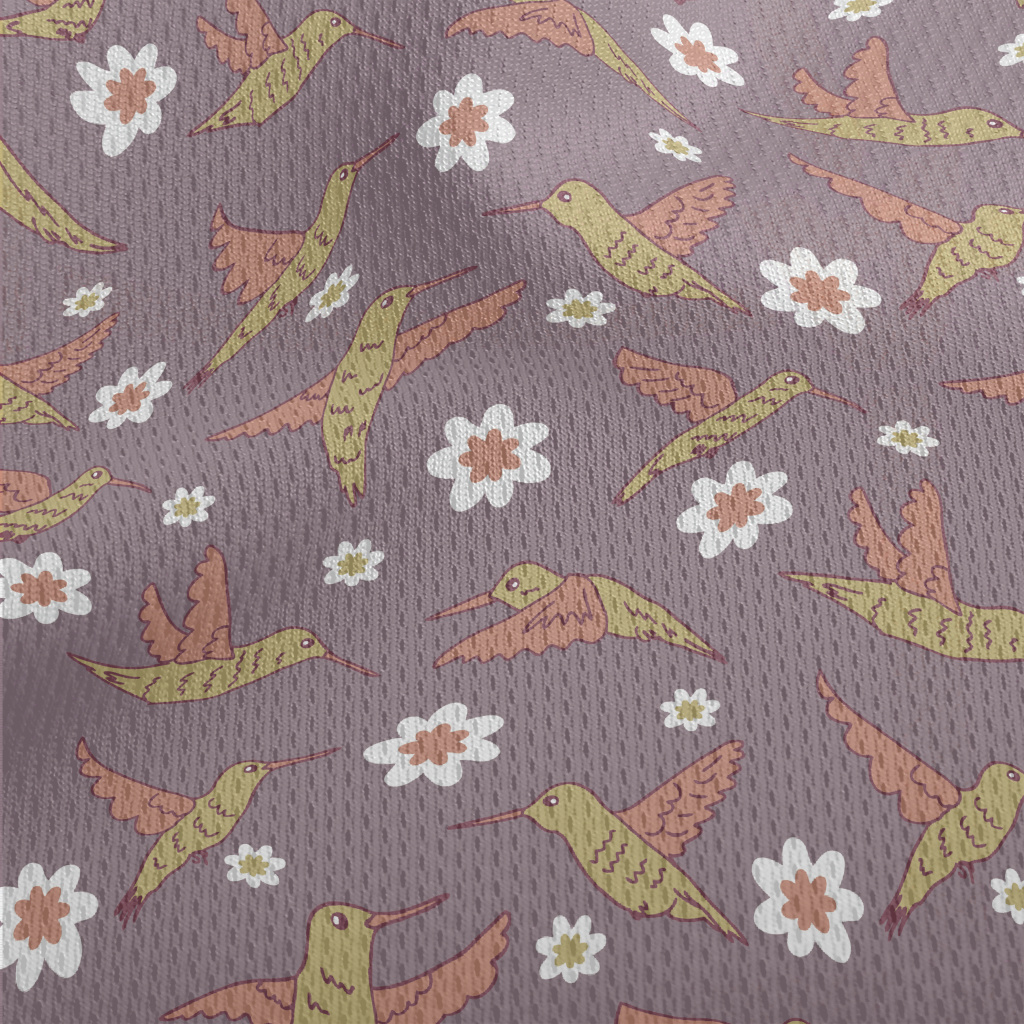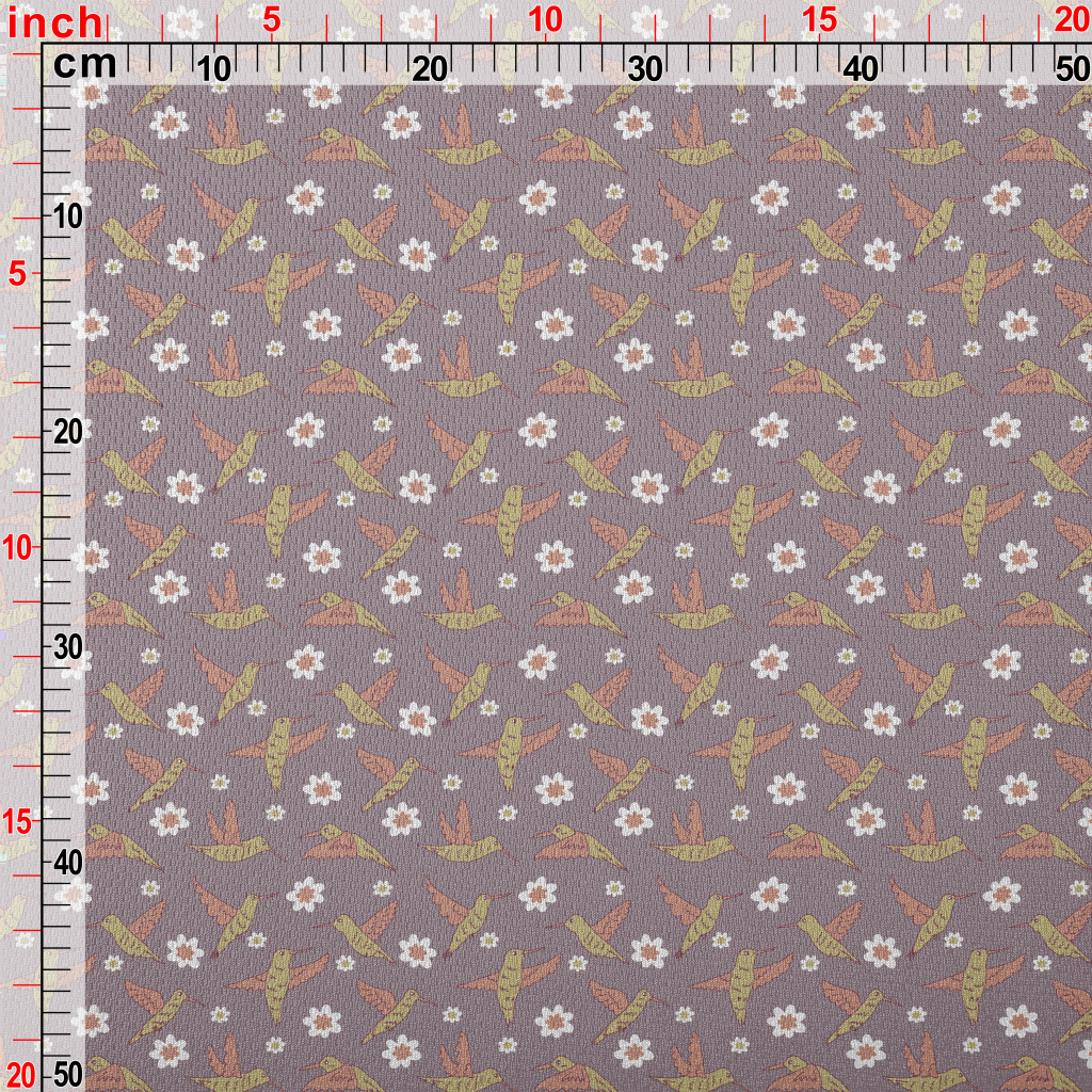手繪塗鴉蜂鳥和花朵鳥眼布(幅寬160公分)