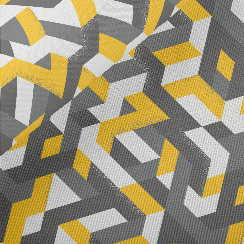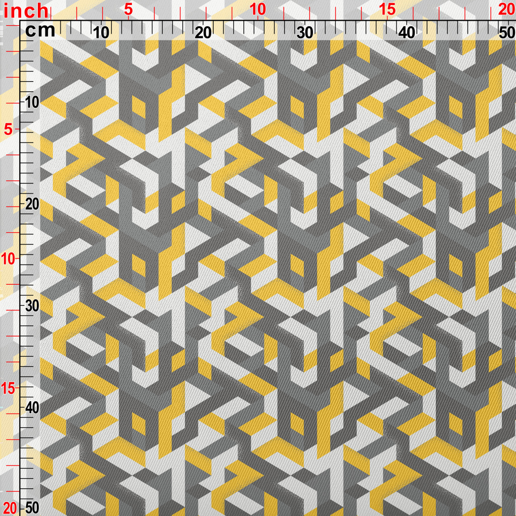 灰黃色線條幾何圖案斜紋布(幅寬150公分)